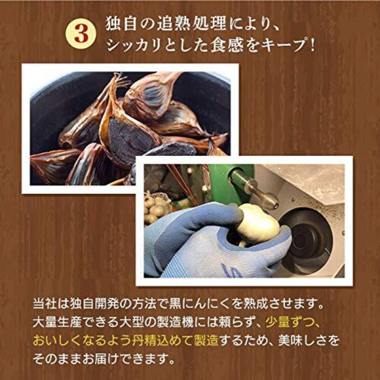 【無添加の黒にんにく】青森県産熟成黒にんにくは、自社で栽培し、厳選されたニンニク「福地ホワイト六片」のみを使用しています。恵まれた自然環境の中で栄養価の高いにんにくを栽培し、こだわりの製法で仕上げた安全、安心の黒にんにくです。