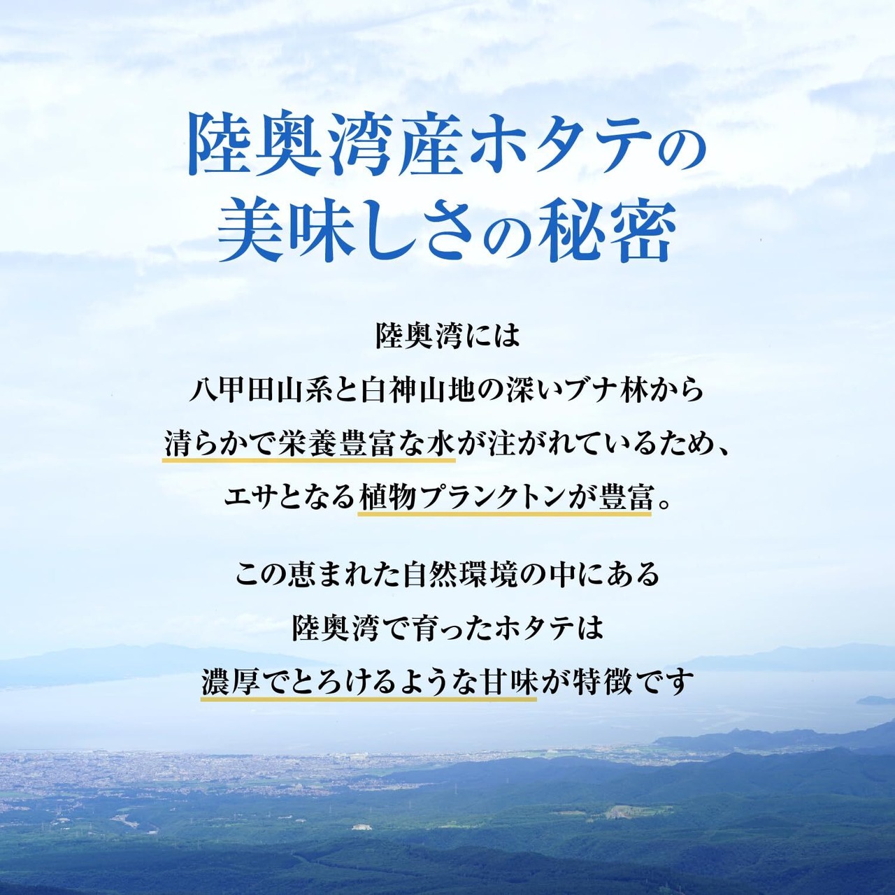 青森県陸奥湾の帆立貝漁は、持続可能な漁業方法を採用しており、環境にも配慮しています。安心して食卓に取り入れられる点も魅力です。