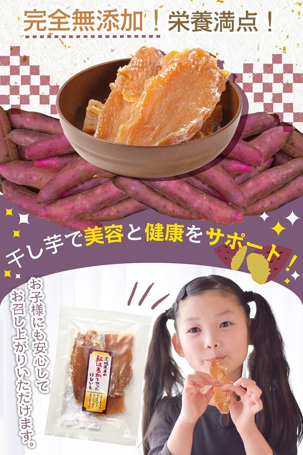 【国産で安心の無添加】干し芋の産地としても有名な茨城県産の紅はるかのみを使用し、完全無添加で仕上げました。さつまいもの素材、そのものの甘みをお楽しみいただけます。国産で無添加ですので、お子様からご年配の方まで安心して美味しくお召し上がりいただけます。