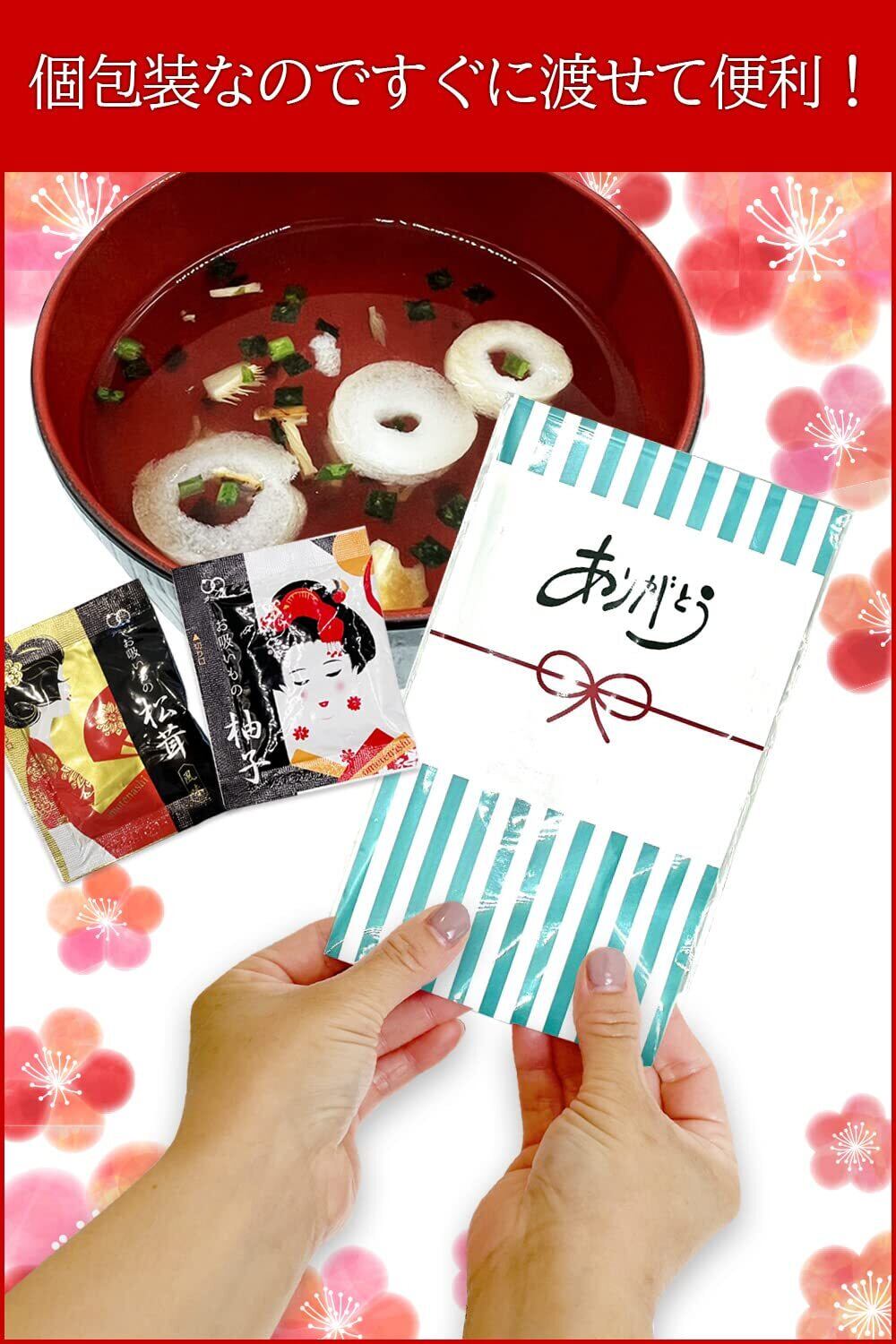 パッケージ内容:(お吸い物2種類)×20セット ギフト梱包済