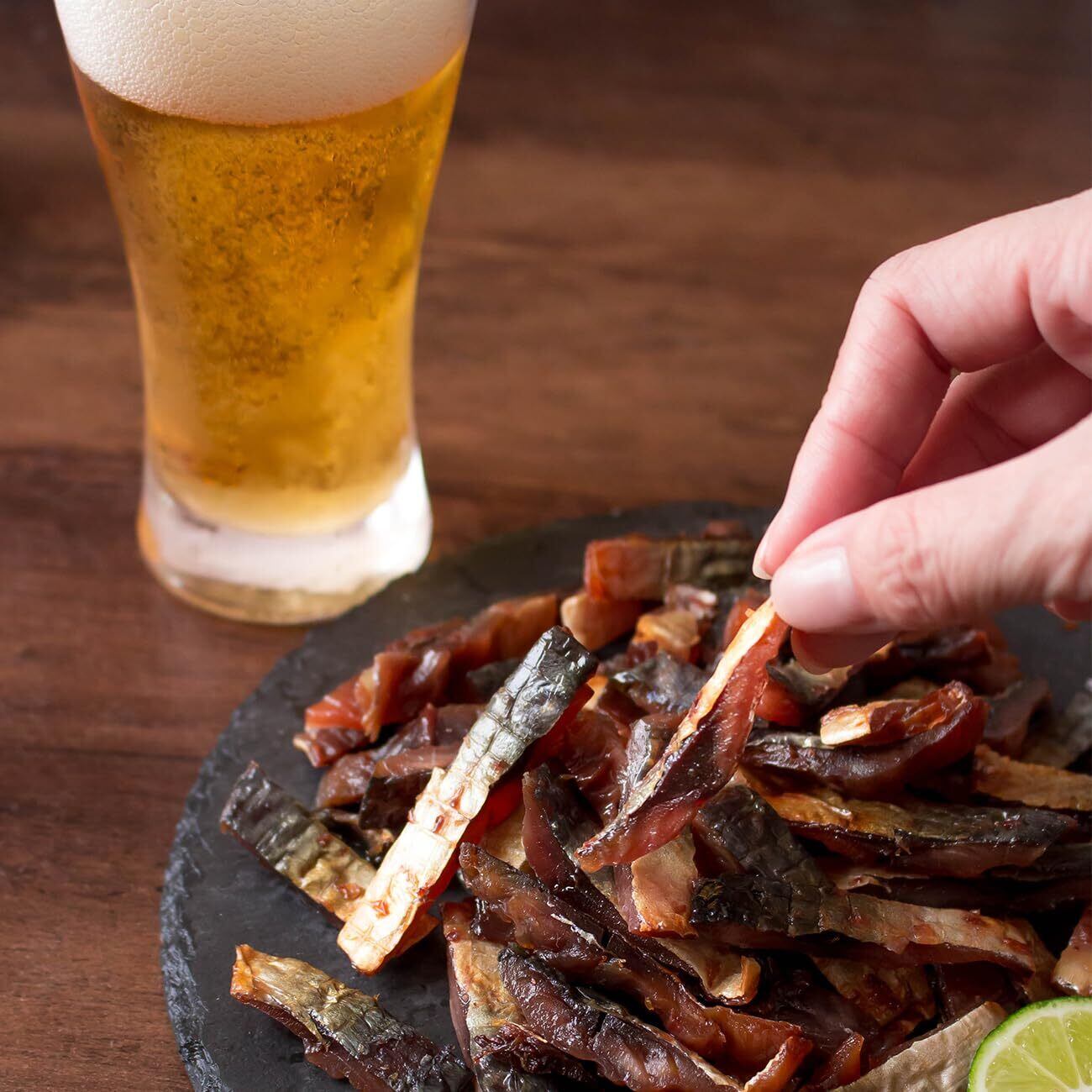 ジューシーで濃厚なサバの旨味がビールにピッタリ!脂のりの良い旬の時期に獲れた新鮮なサバを、そのまま食べられる ジャーキー おつまみ にしました。