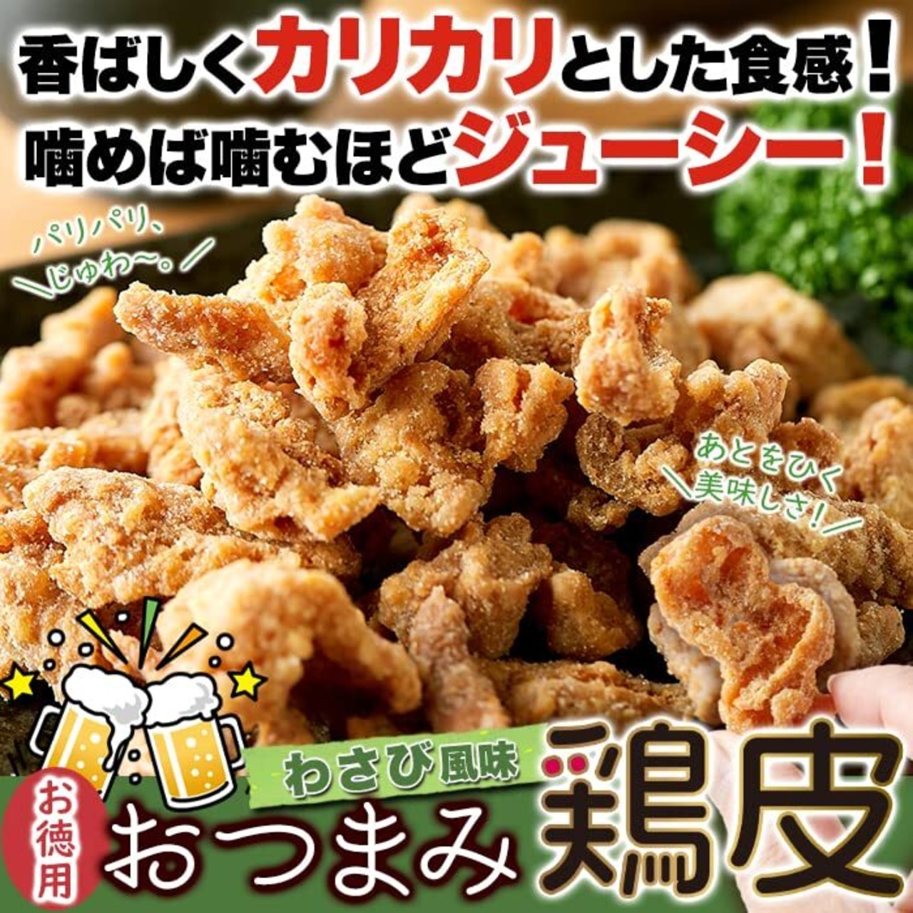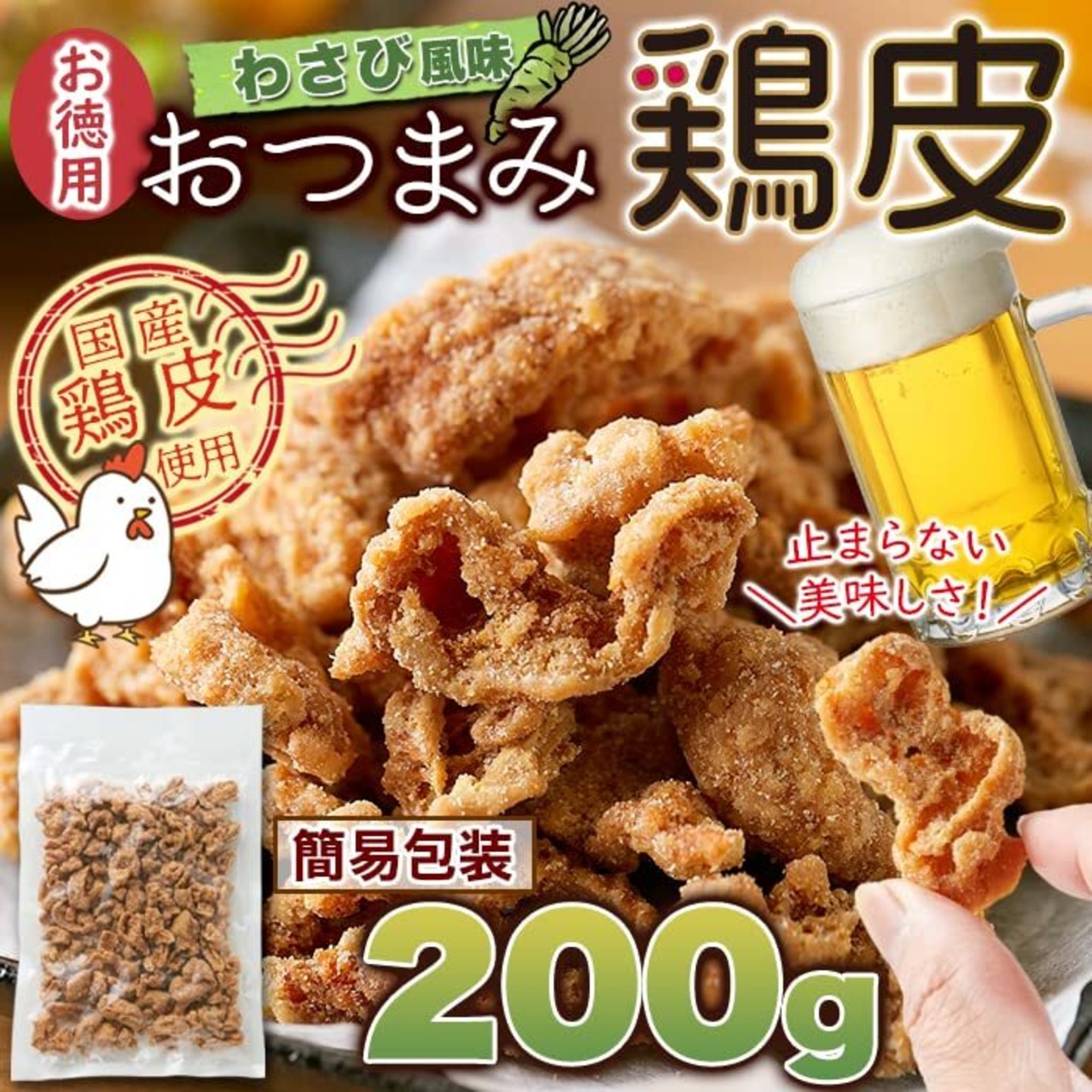 天然生活 おつまみ鶏皮 わさび風味 (200g) 国産 おつまみ 珍味 ピリ辛 チップス パリパリ カリカリ ジューシー 揚げ 大容量 お徳用 業務用 やみつき わさび味