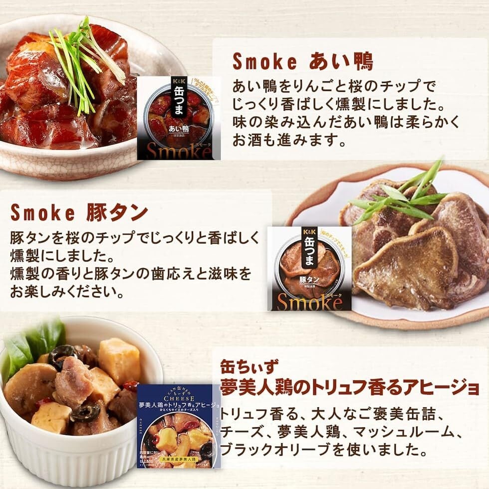 お肉 アソートの 缶つま には 和風 洋風 や 桜チップで 燻製 した 缶つまsmoke チーズ の入った 缶ちぃず があり、 お好みの お酒 と一緒に贅沢な 晩酌 タイムを。 酒のつまみ や 副菜 お惣菜 ご飯のお供 にも。