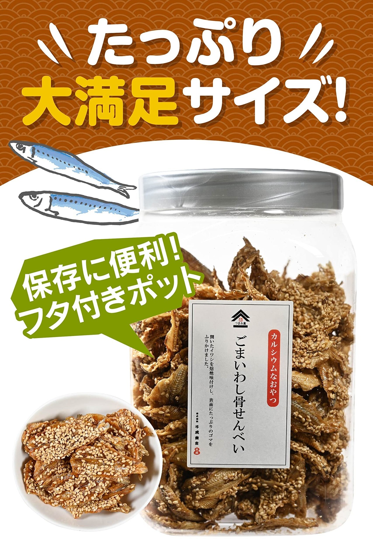 小魚 おやつ 【サクサクごま いわし 骨 せんべい (国内加工)】 珍味 、 カルシウム 補給の おつまみ 、駄菓子 業務用 食品 千成商会 [ つまみ蔵 ] 450g