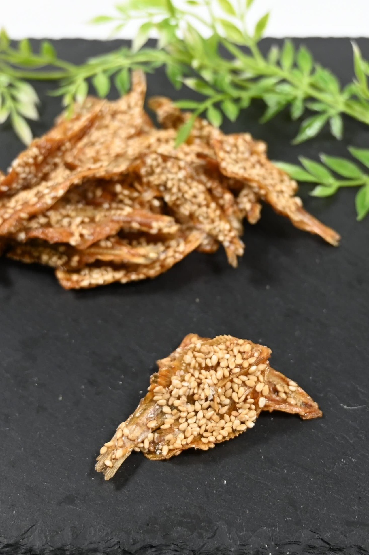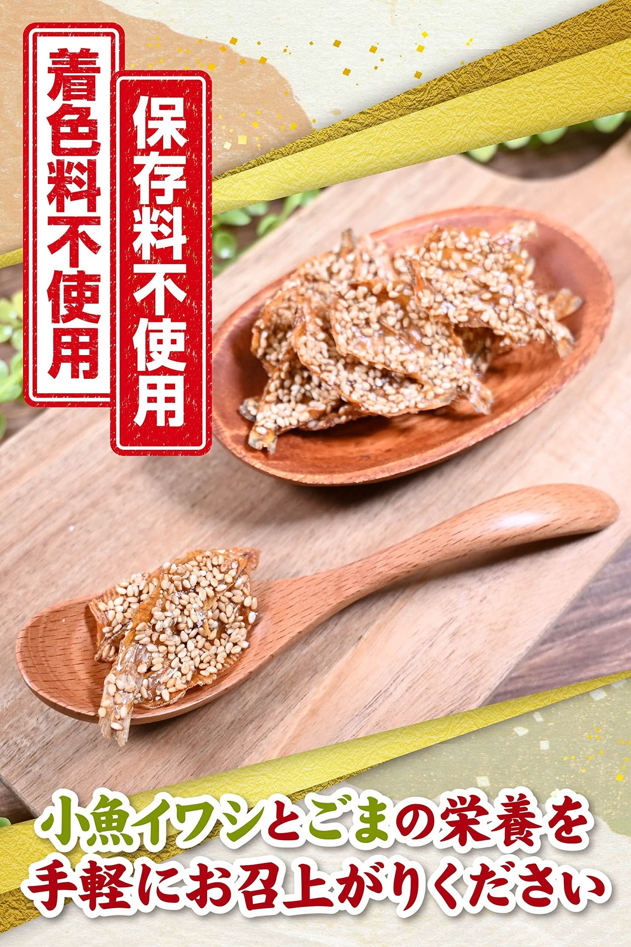 【手軽な栄養補給としても】骨から丸ごと食べられる小魚にふんだんにゴマをまぶした、栄養たっぷりの組み合わせ。おやつ代わりに、気軽にカルシウムなどの小魚の栄養が摂れます。煮干しそのままを食べるのには抵抗がある方にもおすすめです。