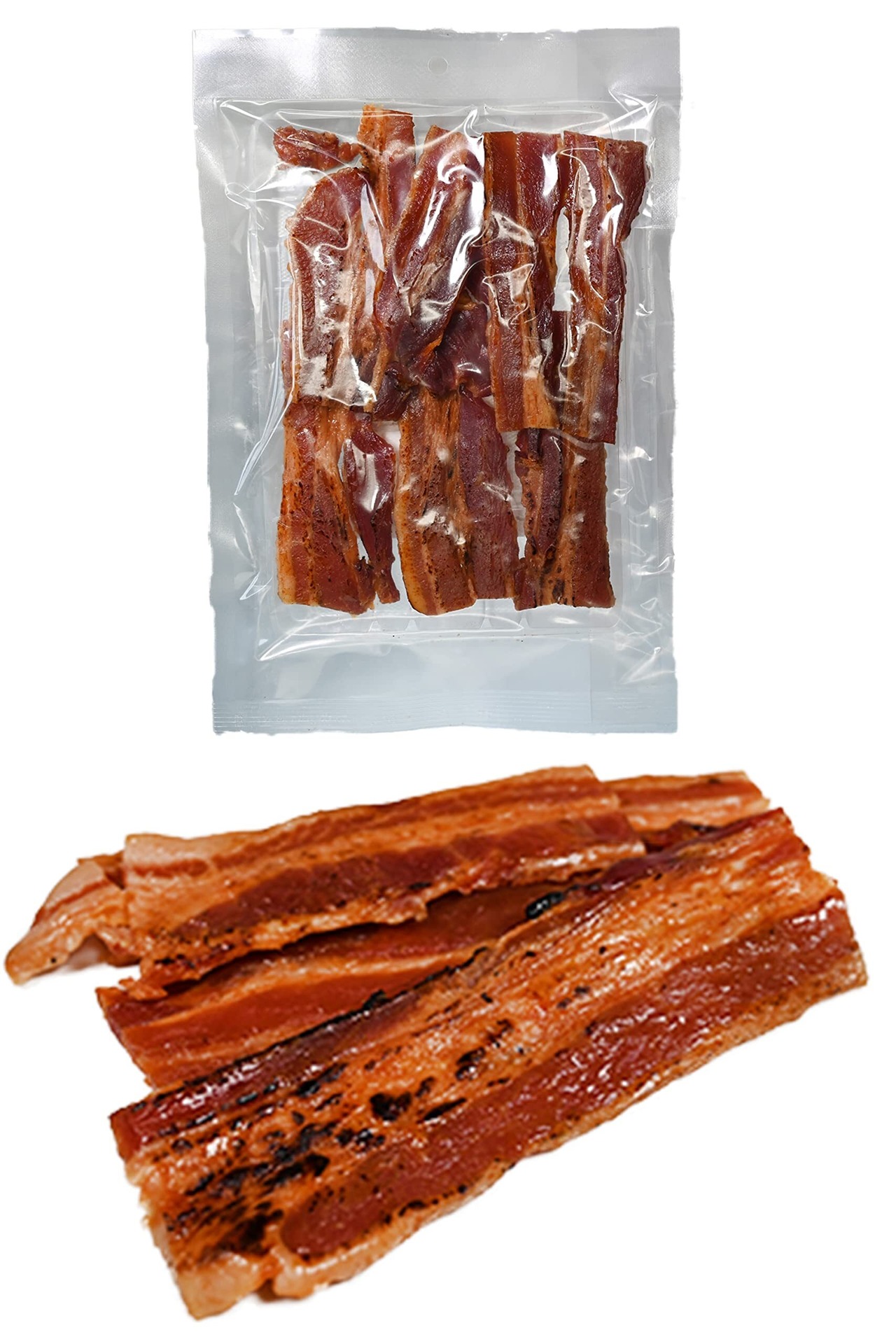 【おつまみだけじゃない、大活躍のジャーキー】そのままでも美味しい豚バラジャーキーですが、軽く炙ってもさらに香ばしく美味しくお召し上がりいただけます。厚切りで、まさに肉そのものの味わいですので、ご飯やパンのお供に、おかずとしても大活躍!さらに、おにぎりの具にしたり、細かく切ってサラダに振りかけたり…様々な料理でアレンジがお楽しみ頂けるおつまみです。