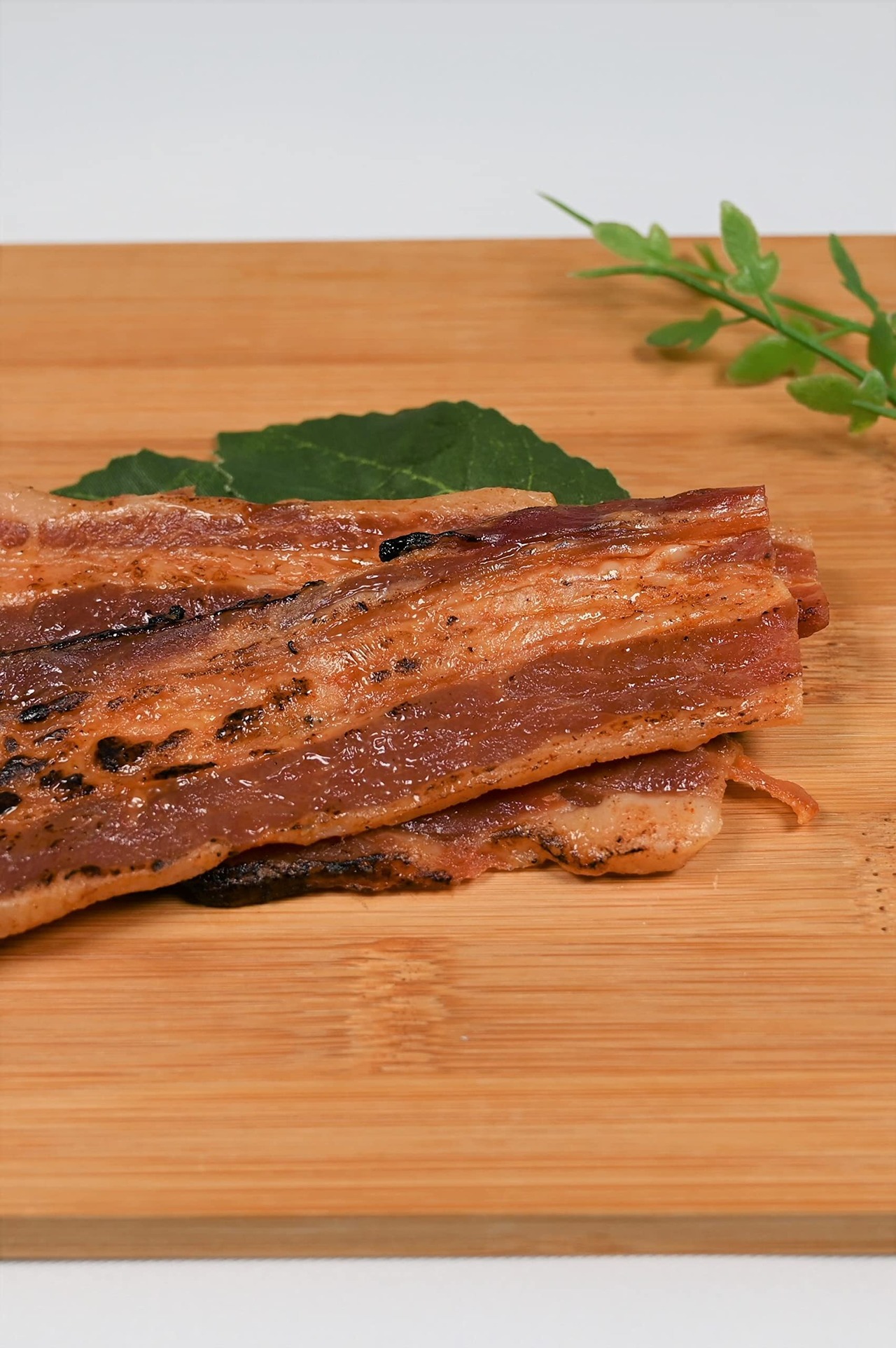 【高タンパクなジャーキー】肉を干して作られたジャーキーは、高タンパク!さらに、豚バラジャーキーは肉厚なので1枚でも食べ応えがあり、少しずつ食べてもご満足いただけるおつまみとなっています。糖質など体の健康を意識されている方にも実はおすすめの豚バラジャーキーです。