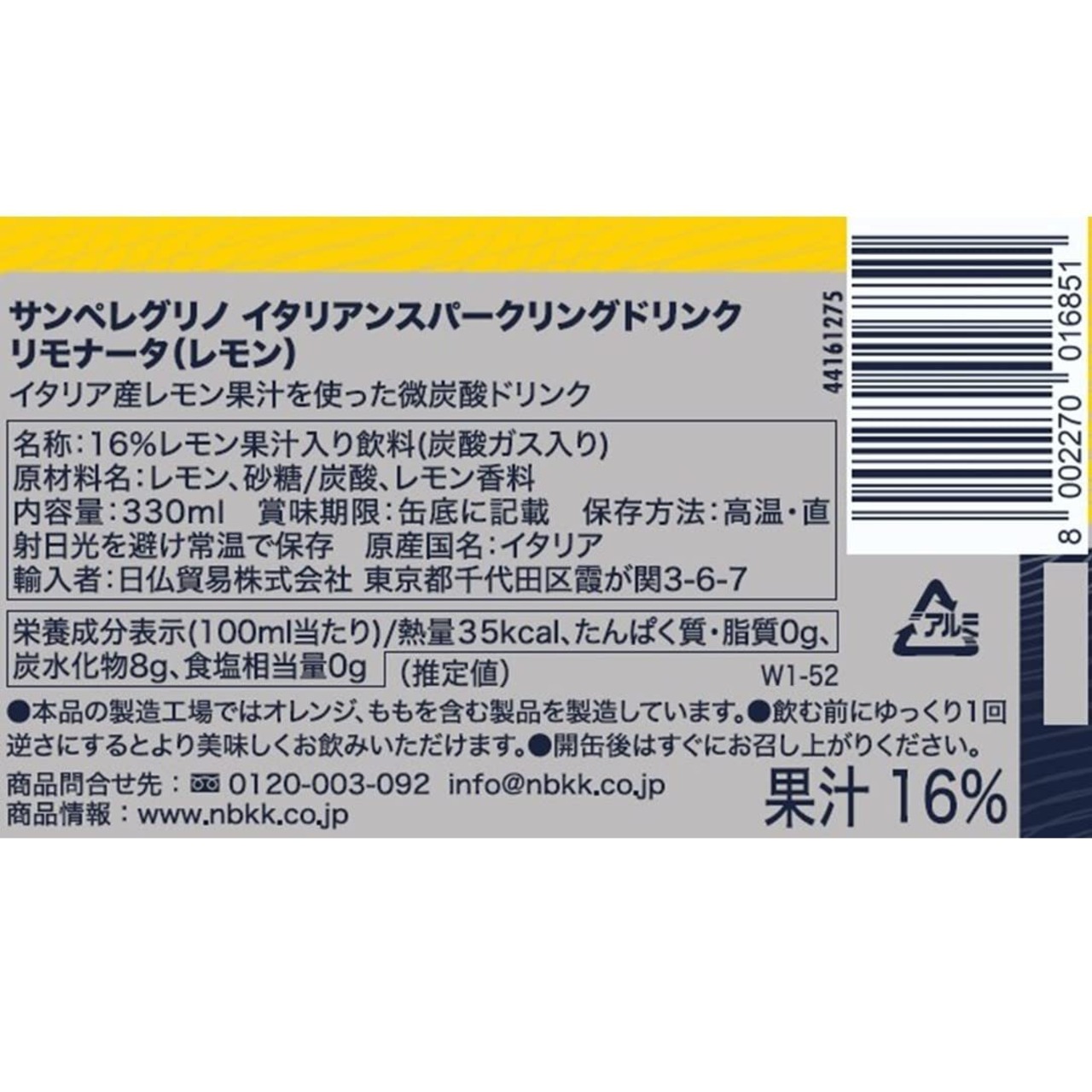 SANPELLEGRINO(サンペレグリノ) イタリアン スパークリングドリンク リモナータ (レモン) 330ml ×24本 炭酸水 (果汁16% イタリア産レモン果汁 微炭酸)