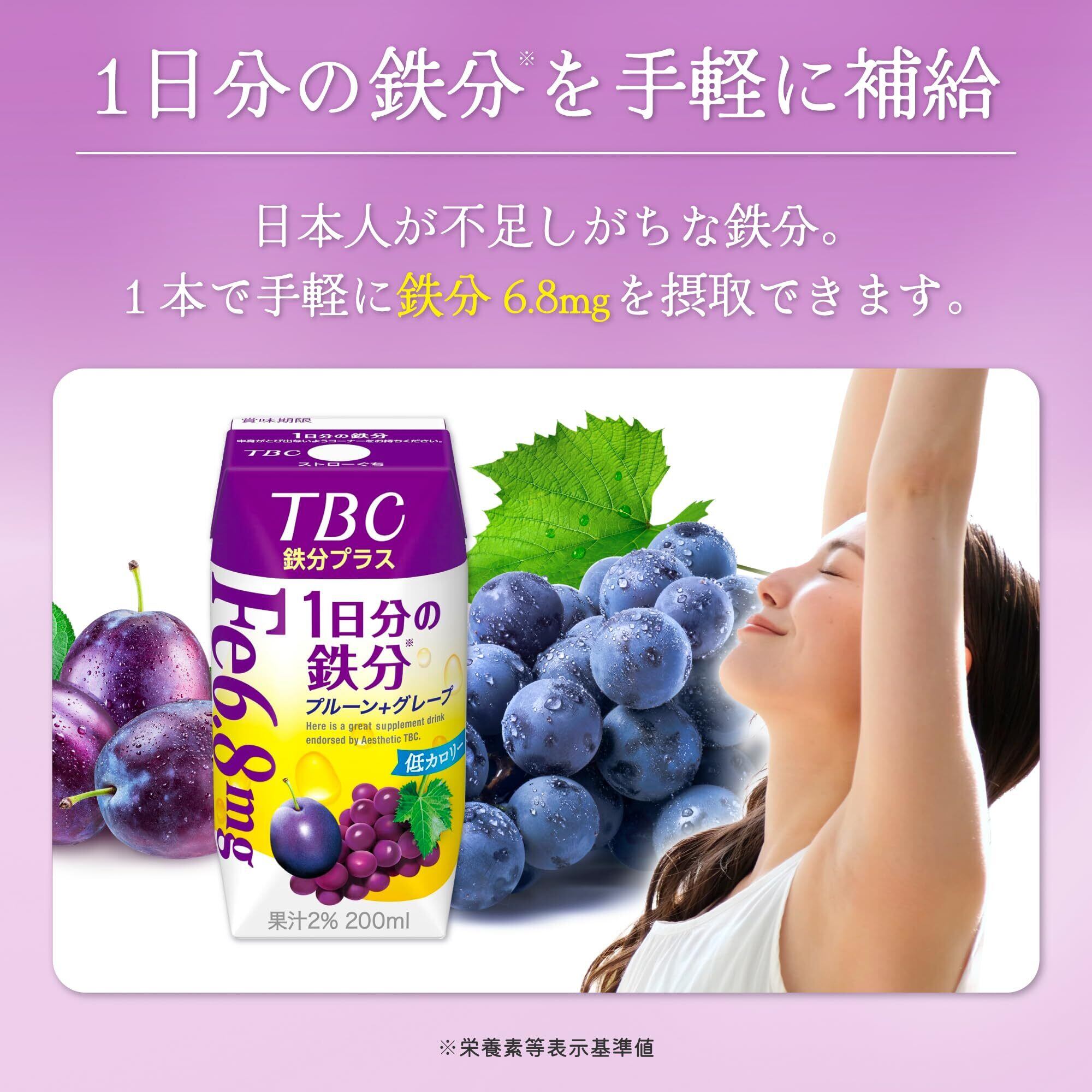 森永乳業 TBC 鉄分プラス 1日分の鉄分 プルーン+グレープ 200ml [ 低カロリー 紙パック ドリンク 飲み物 常温保存 ]×24本