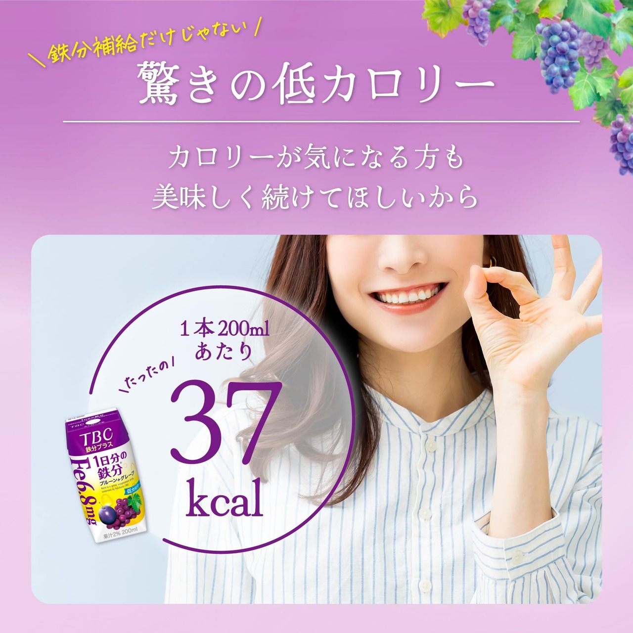 ●1本37kcalと低カロリーなのに、6.8mgの鉄分がおいしく摂取できる嬉しい1本。