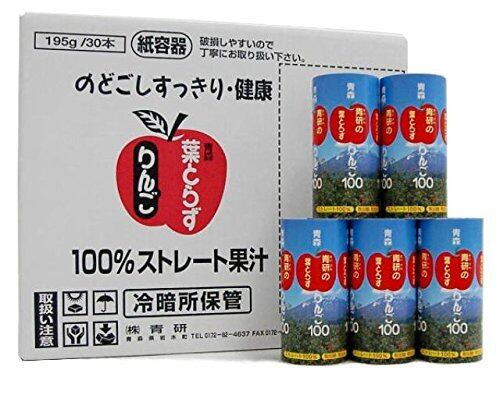 葉とらずりんご100は、195gの飲みきりサイズが1箱に30本入った商品です。 青研のりんごジュースは冷蔵管理の青森産りんごを更に吟味し、紅玉・ふじ等の5種類のりんごを水も砂糖も香料も加えず、丸ごと搾ったストレート100%りんご果汁です。だから、まろやかなのに喉越しスッキリ、あと味サワヤカなのです。 また、容器は「カートカン」という紙容器ですので、牛乳パックのようにリサイクルできます。青研ではカートカン売上の一部を「緑の募金」に寄付しています。