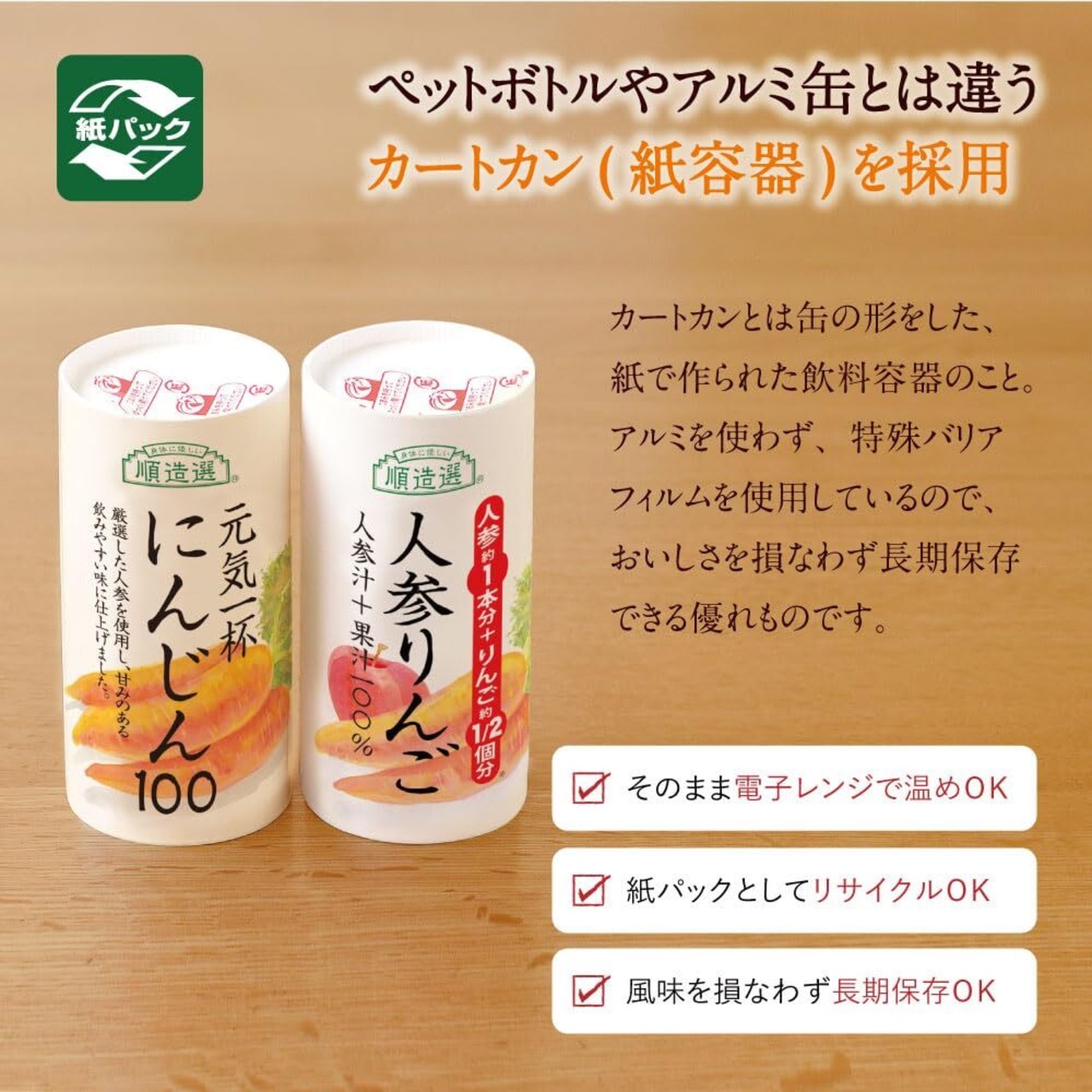 便利な飲みきりサイズの紙容器・カートカンを使用。セット内容:195g×15本