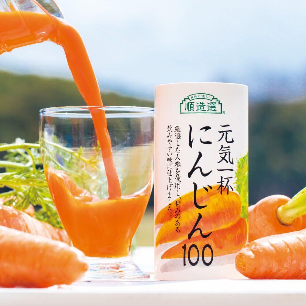 人参ジュース1本(195g)には16,000μgのβカロテンが含まれています!1本で約人参2本分のβカロテン