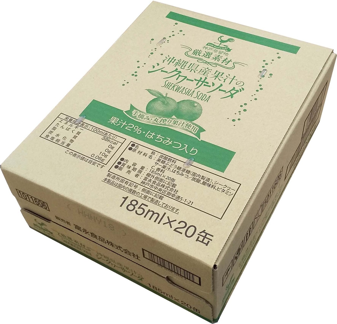商品(左): 原材料:果糖ぶどう糖液糖(日本製造)、シークヮーサー果汁、はちみつ/炭酸、酸味料、香料、ビタミンC