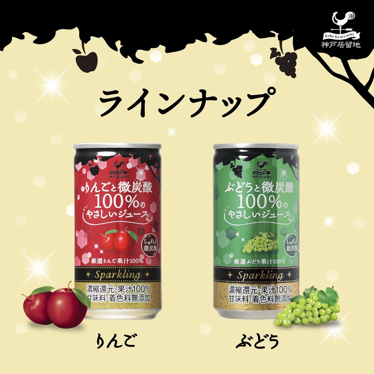 神戸居留地 ぶどうと微炭酸100%のやさしいジュース 185ml×20本