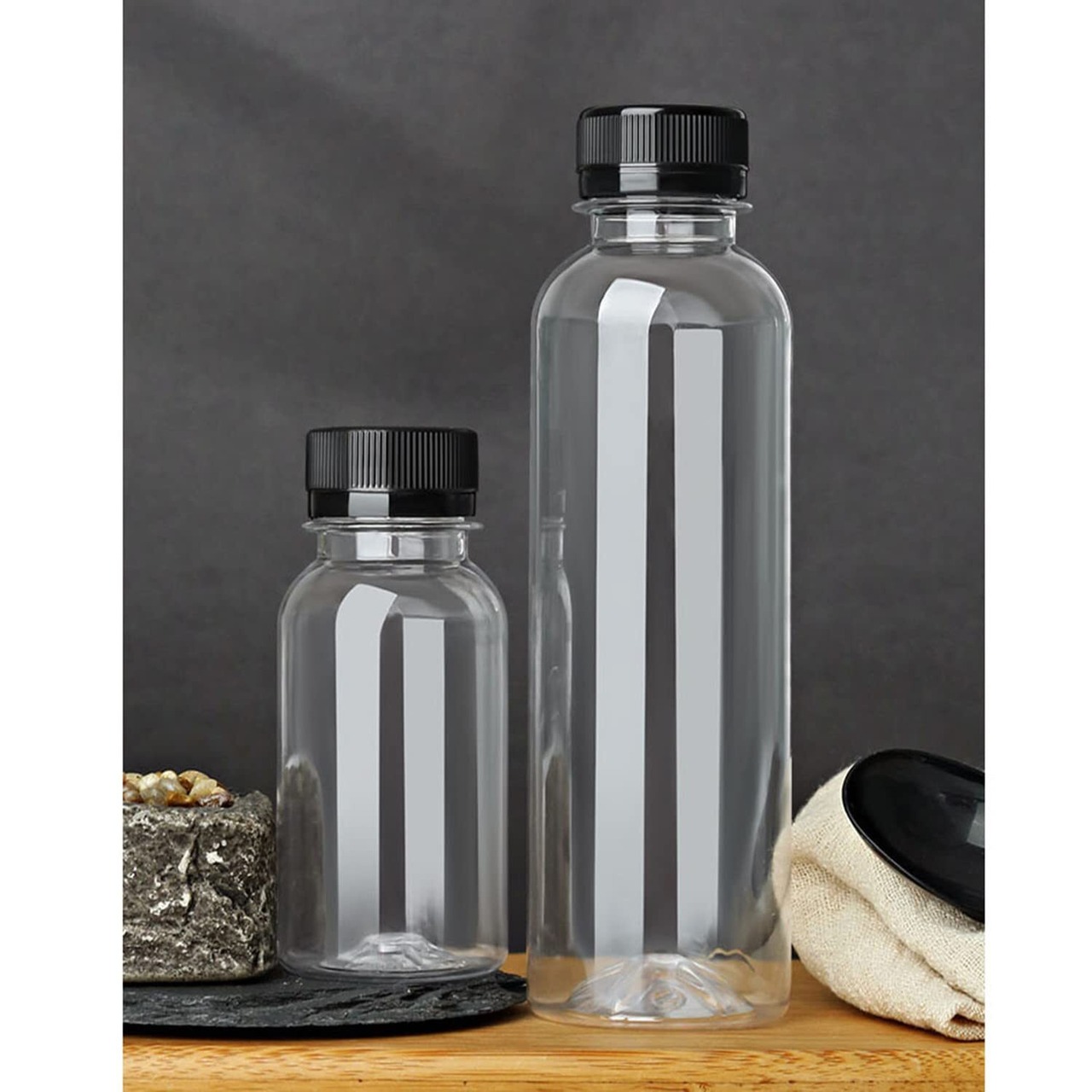 SHZMJL 蓋付き500mlのドリンク ボトル、プラスチック ジュース ボトル、4本入クリア ボトル、空のミルクボトル、再利用可能な透明なバルク飲料ジュース、牛乳、その他の飲み物用透明なペット用