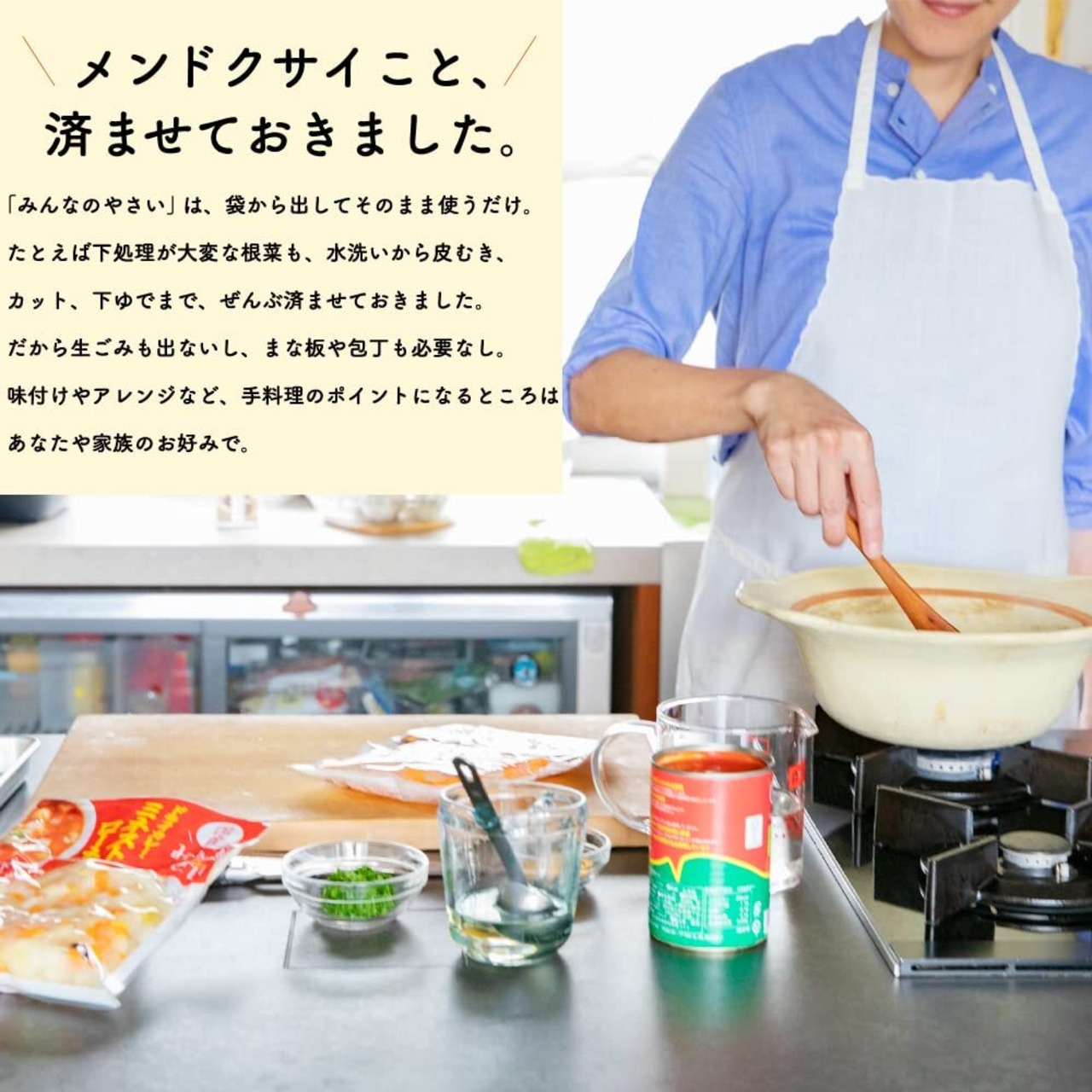 野菜を包装してから過熱しているため、中身の液に野菜の旨みが入っています。ぜひ液体ごとご使用ください。