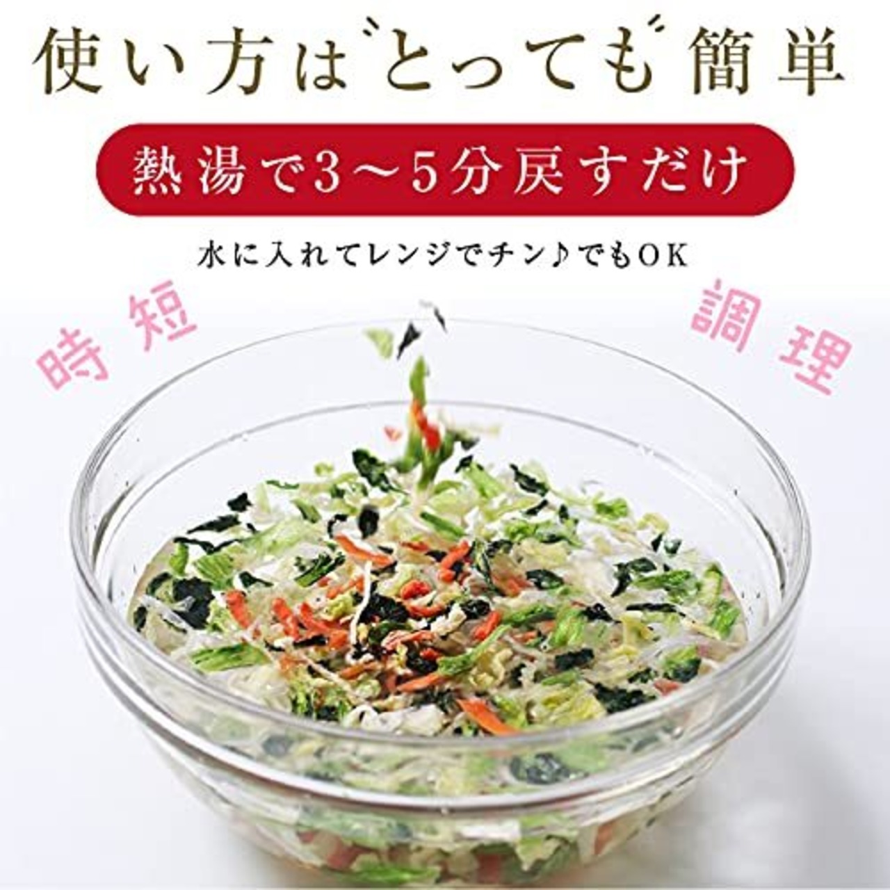 【使い方簡単】熱湯で3~5分戻してからお召し上がりください。水に入れレンジで温めてもご利用頂けます。お湯で戻すと約5倍に膨らみます。ぜひ一度自慢のシャキシャキ食感をお試しください。