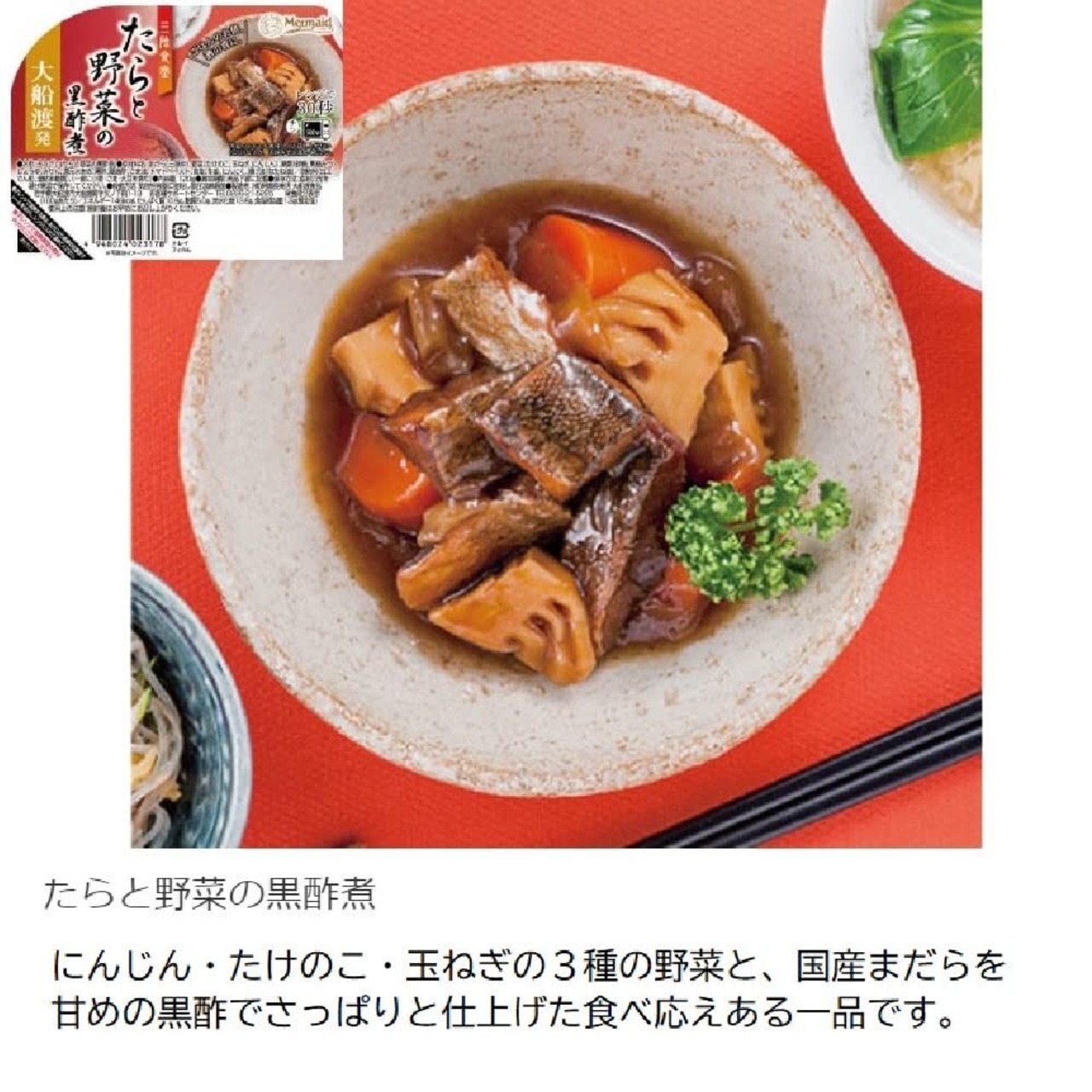 常温のままでお召し上がれます。国内でとれた魚を和食にしました。全部で7種類。内容量120g。「たらと野菜の黒酢煮」「ぶりと大根の炊き合わせ」「さば味噌煮」「さんま蒲焼き」「いわしとごぼうの生姜煮」「いわし蒲焼き」「かつおとたけのこの柔らか煮」7食にお吸物もセットにしました。お食事の際にご一緒にお召し上がりください。お好みで当店オリジナル七味をかけて食べてくださいませ。
