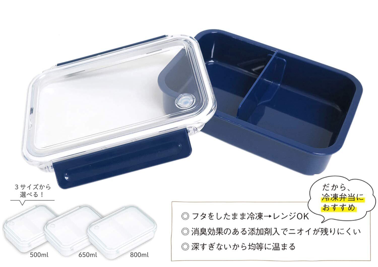 OSK まるごと冷凍弁当箱 ネイビー (650ml / 2個セット) 冷凍保存 レンジ対応 弁当箱 女性 子供