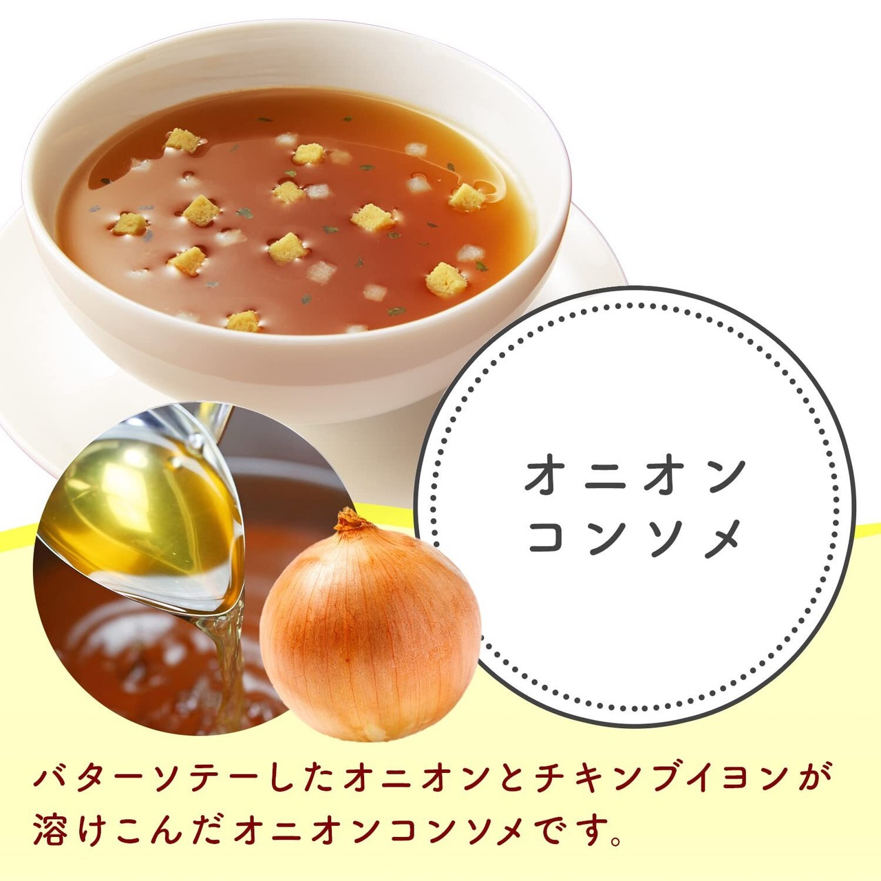 乳糖(アメリカ製造又はカナダ製造)、デキストリン、食塩、オニオンエキス、食用加工油脂、酵母エキス、砂糖、チキンエキス、バターソテーオニオンパウダー、ビーフエキス調味料、オニオン、ローストオニオンパウダー、はくさいエキス、粉末しょうゆ、こしょう、チキンブイヨンパウダー、うきみ(クルトン、たまねぎ調味品、パセリ)/調味料(アミノ酸等)、カラメル色素、膨脹剤、酸化防止剤(ビタミンE)、酸味料、(一部に小麦・乳成分・牛肉・大豆・鶏肉・豚肉・りんごを含む)
