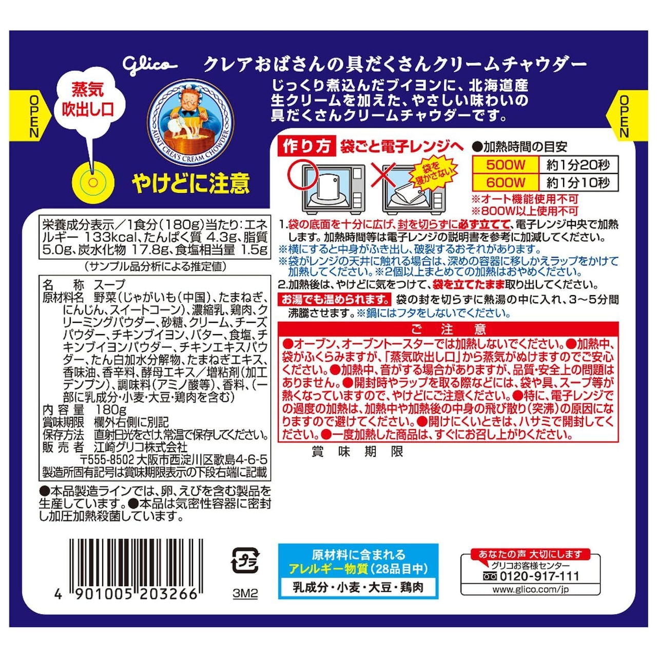 クレアおばさんの具だくさんクリームチャウダー 180g×10個 江崎グリコ (常温保存/非常食/備蓄/ローリングストック/レトルト/レンジ対応)