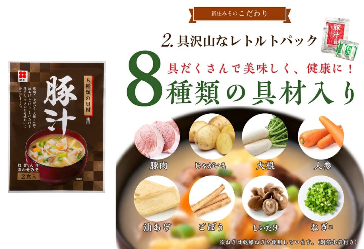【20食】8種の具材が自慢の即席とん汁(2食入✕10個)【8種のレトルト具材とみその相性◎】 (お湯で溶くだけ/即席味噌汁/豚汁/新庄みそ)