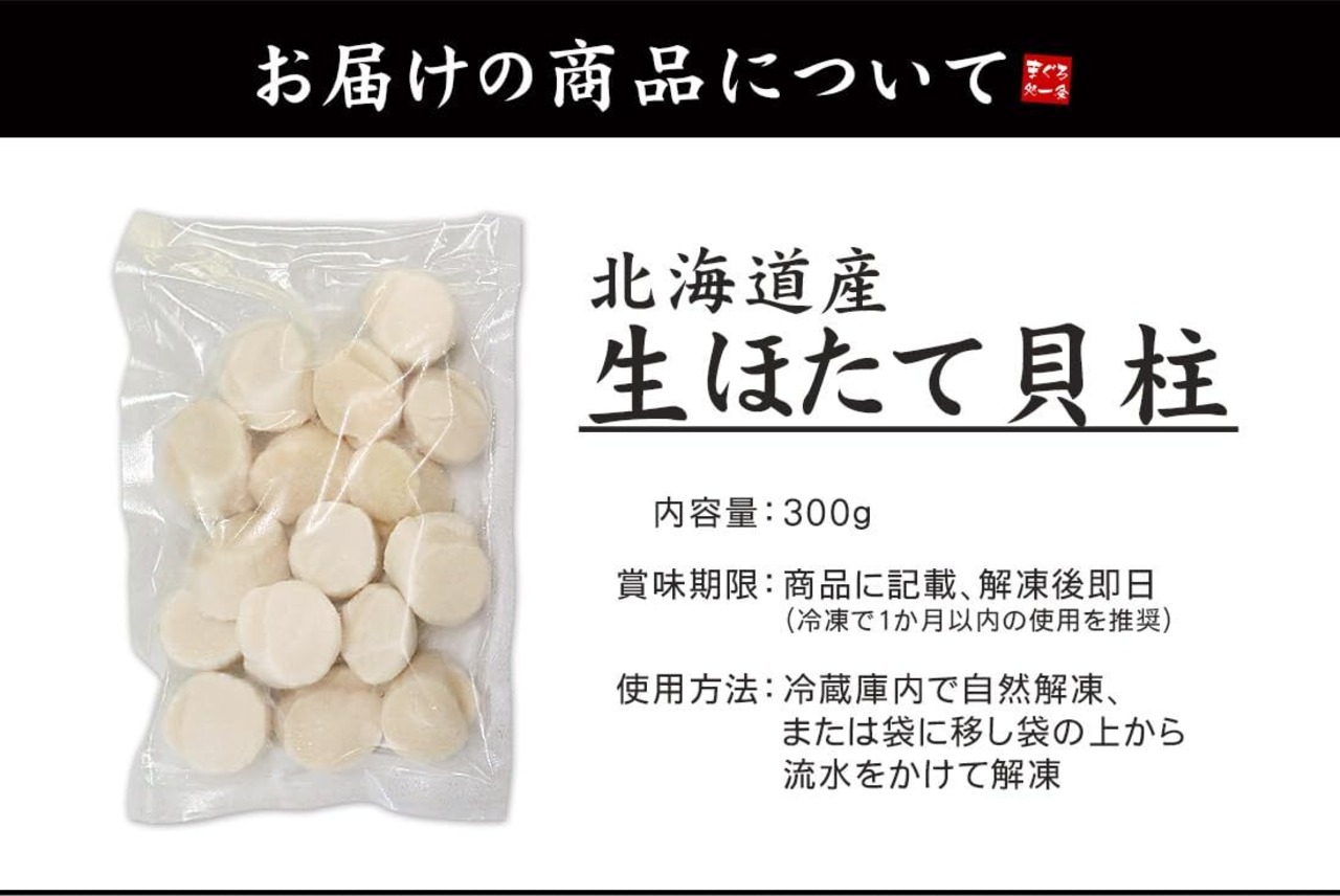 まぐろ処一条 冷凍 生ホタテ 北海道産 貝柱 300g(10~18玉入) お刺身 ほたて 帆立 [[生ほたて300g]