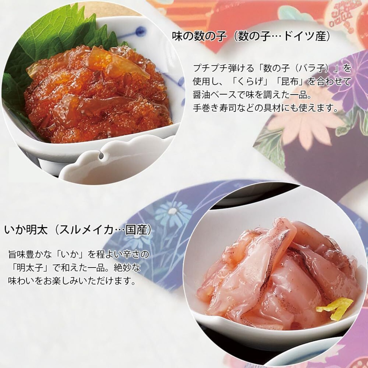【セット内容】いか塩辛、数の子松前、おさしみ松前、いか黄金、たこわさび、つぶジャン辛、帆立ワサビ、いか明太、えびジャン辛、松前漬、いか豆板醤、味の数の子/各70g