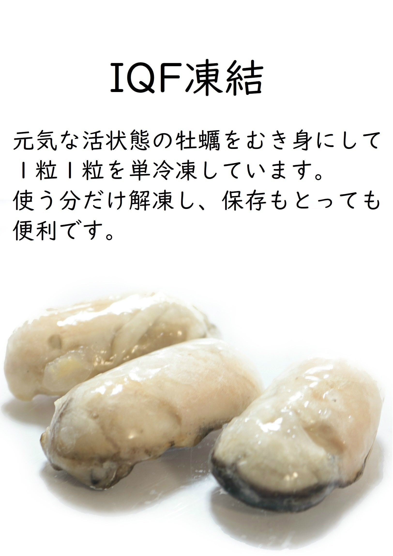 ■特徴 美味しさと新鮮さを損なわずに世界基準よりも厳しい安全基準をクリアした美味しいカキのむき身です。