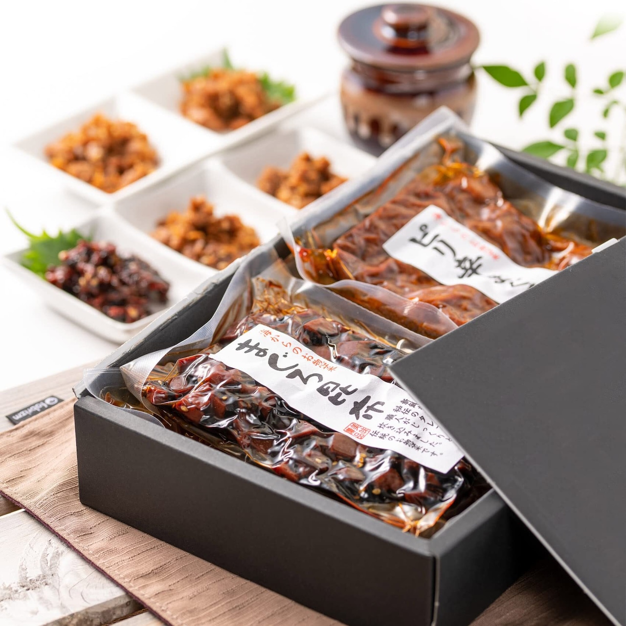 ◇ご注意ください◇の仕様上【プライム発送の場合】お届け先が違う(ギフト)の場合 依頼主の情報が記載されません。 ※必ず ギフト設定をお願いします。「□ギフトの設定」のチェックボックスをクリックして✓を入れて下さい。またはお届け先の方にギフトをお送りする旨を事前にお伝えください。ちょっと珍しいまぐろの佃煮5種類を化粧箱に詰め合わせた海鮮詰め合わせセットです。 高級感あふれる黒の化粧箱に詰め合わせて包装しておりますので、敬老の日、母の日、父の日、お歳暮ギフトやバレンタイン、ホワイトデーのお返しなどにお勧めです。