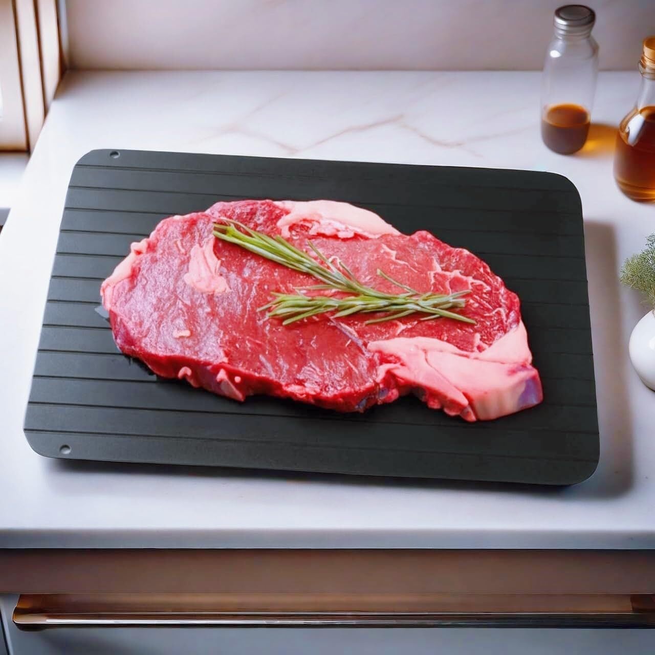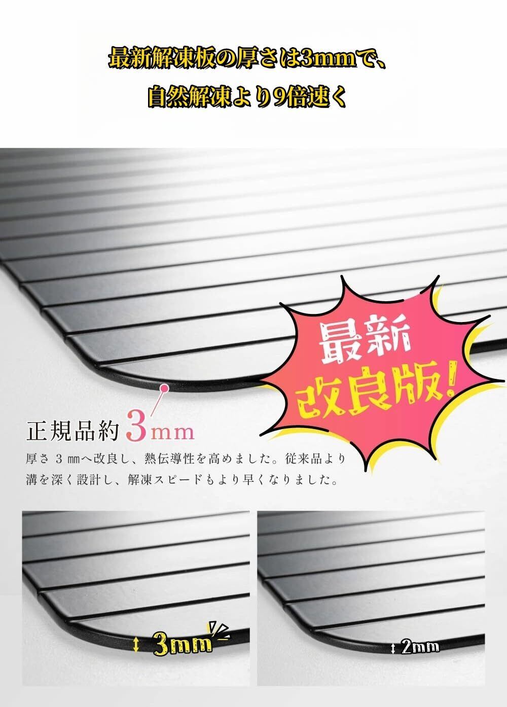 【高品質材料厚み増やしデザイン】:解凍板の厚さは3mmで、アルミニウム制の材質で、 純粋な高速解凍プレートは、高密度の航空合金で作られており、表面は特殊な材料で処理されています。これにより効率的に熱を吸収・伝導し、解凍スピードを最大限に高めます。