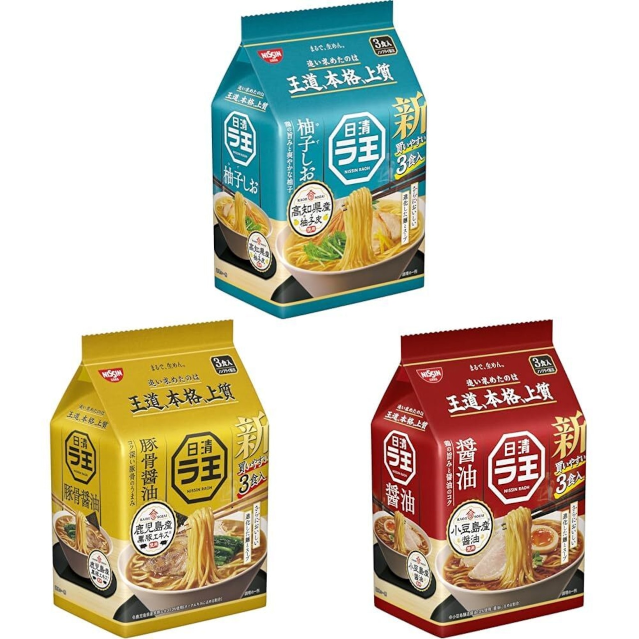 【セット買い】日清食品 日清ラ王 柚子しお [高知県産柚子皮] インスタント 3食パック 279g + 日清食品 日清ラ王 豚骨醤油 [鹿児島産黒豚エキス] インスタント 3食パック 300g + 日清食品 日清ラ王 醤油 [小豆島産醤油] インスタント 3食パック 303g