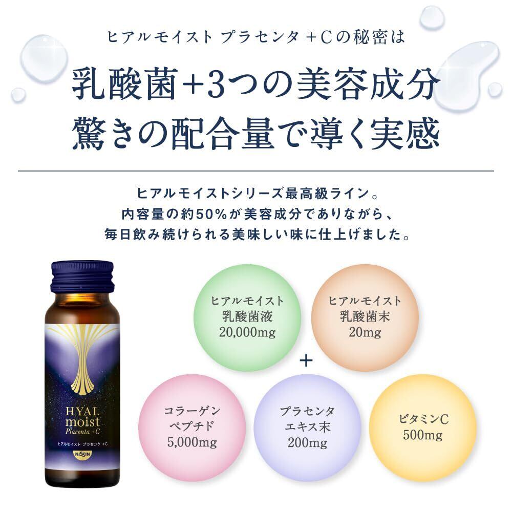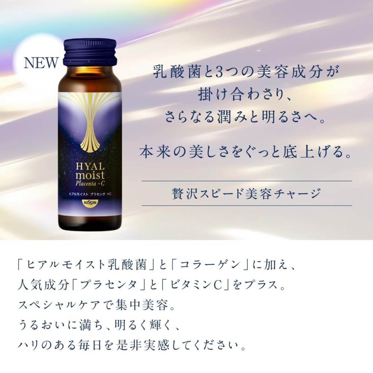 日清食品 ヒアルモイスト プラセンタ +C 美容ドリンク 50ml×10本 ヒアルモイスト乳酸菌 プラセンタ コラーゲン ビタミンC 配合(パッションフルーツ味)