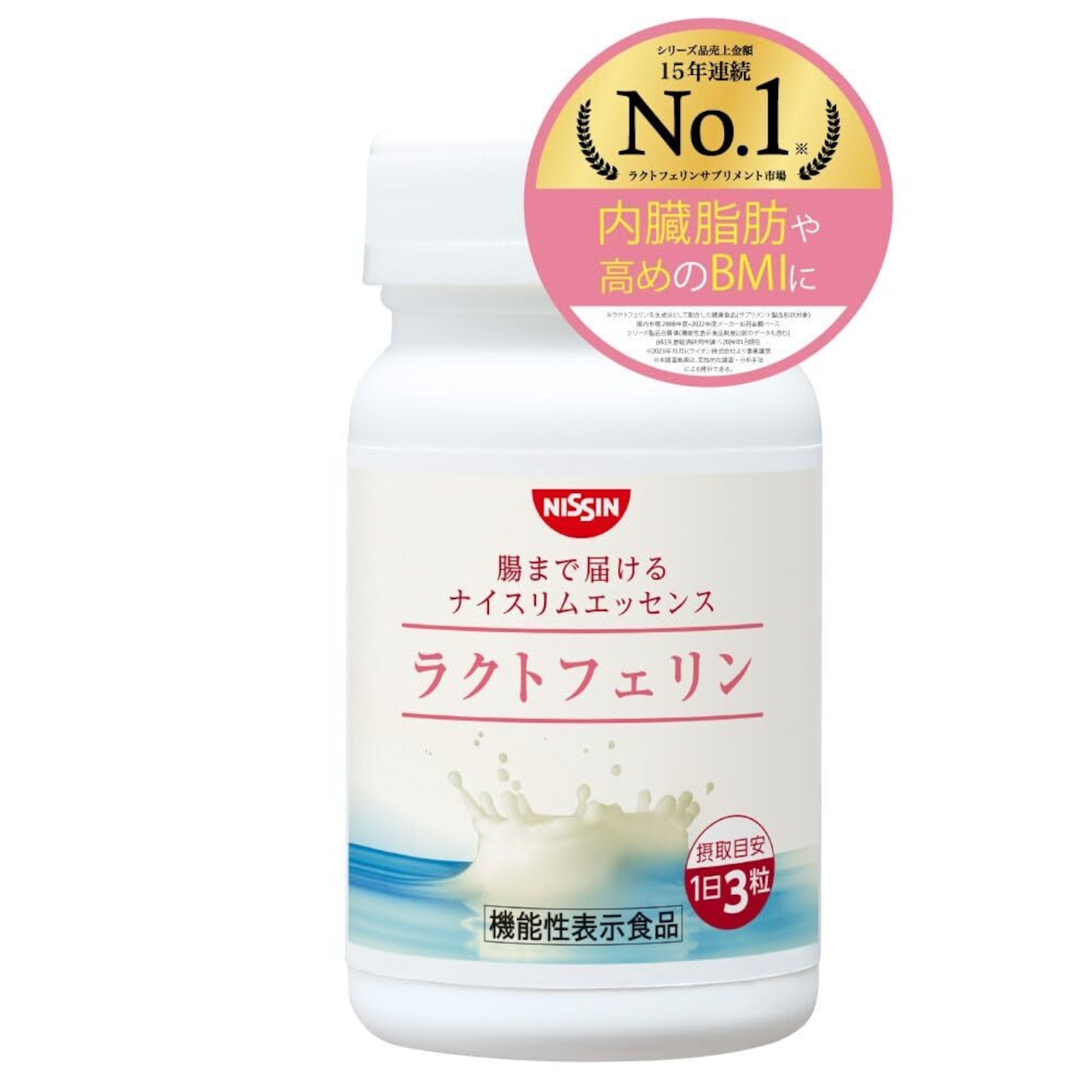 【商品特徴】日清食品のラクトフェリンは肥満気味な方の内臓脂肪を減らすのを助け、高めのBMIの改善に役立つ機能性表示食品です。