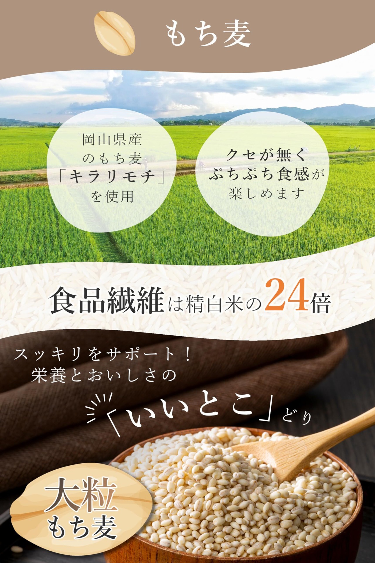 【キラリモチとは】岡山県産もち麦の「キラリモチ」は食物繊維(β‐グルカン)含有しています。キラリモチ(もち性大麦)は精白米と比べて24倍の食物繊維を含むことから体の中からキレイになりたい方におすすめです。