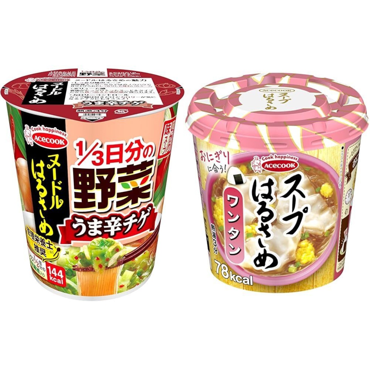 【セット買い】エースコック ヌードルはるさめ 1/3日分の野菜 うま辛チゲ 44g×6個 + エースコック スープはるさめ ワンタン 22g×6個