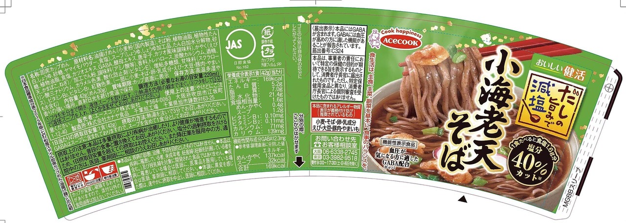 1食(42g)当たり:エネルギー169kcal、タンパク質5.2g、脂質7.0g、炭水化物21.4g、食塩相当量1.6g