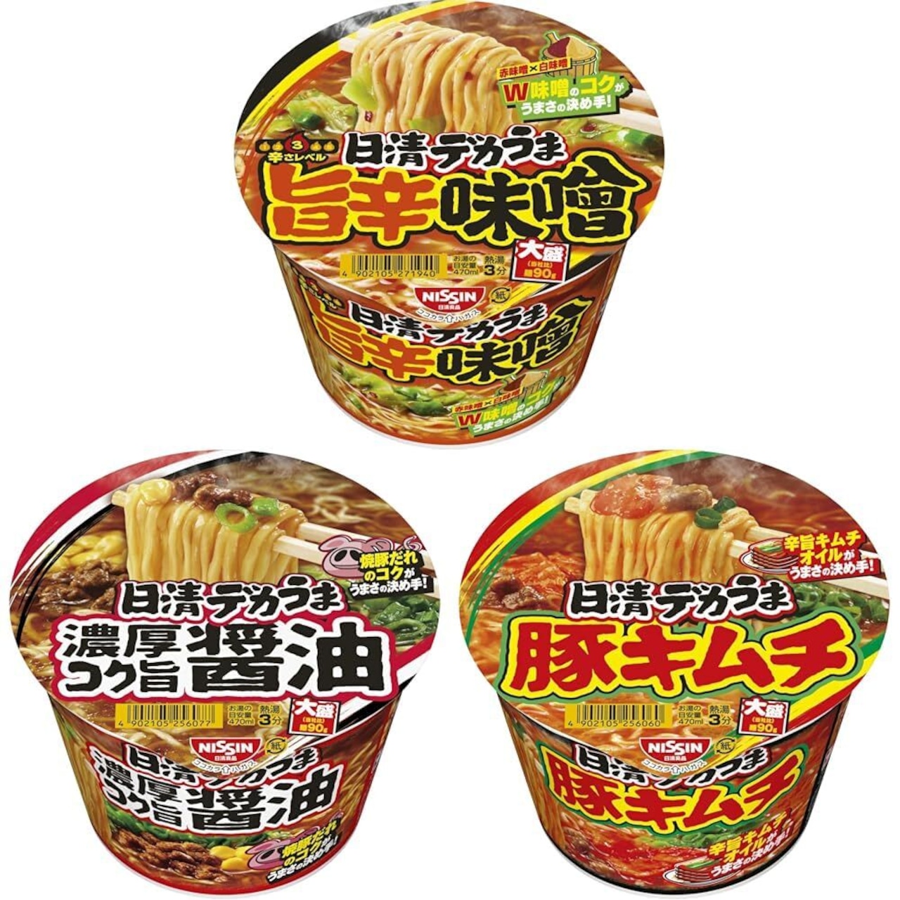 【セット買い】日清食品 日清デカうま 旨辛味噌 106g×12個 + 日清食品 デカうま 濃厚コク旨醤油 116g ×12個 + 日清食品 日清デカうま 豚キムチ カップ麺 101g×12個