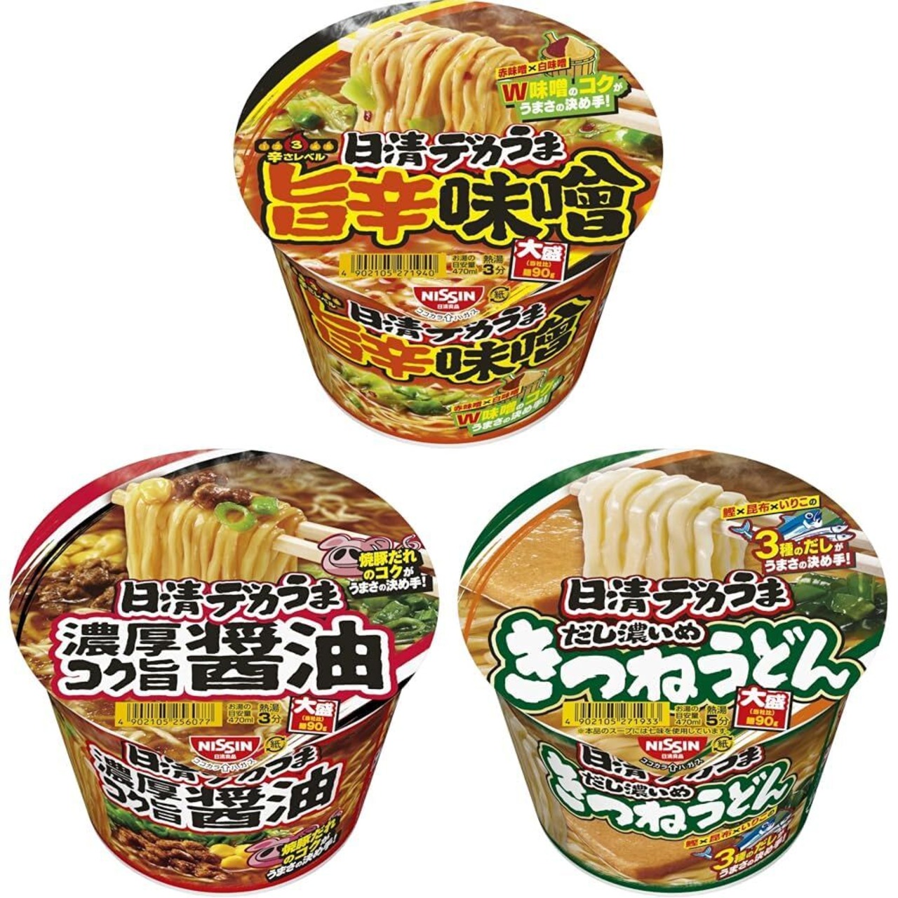 【セット買い】日清食品 日清デカうま 旨辛味噌 106g×12個 + 日清食品 デカうま 濃厚コク旨醤油 116g ×12個 + 日清食品 日清デカうま きつねうどんだし濃いめ 106g×12個