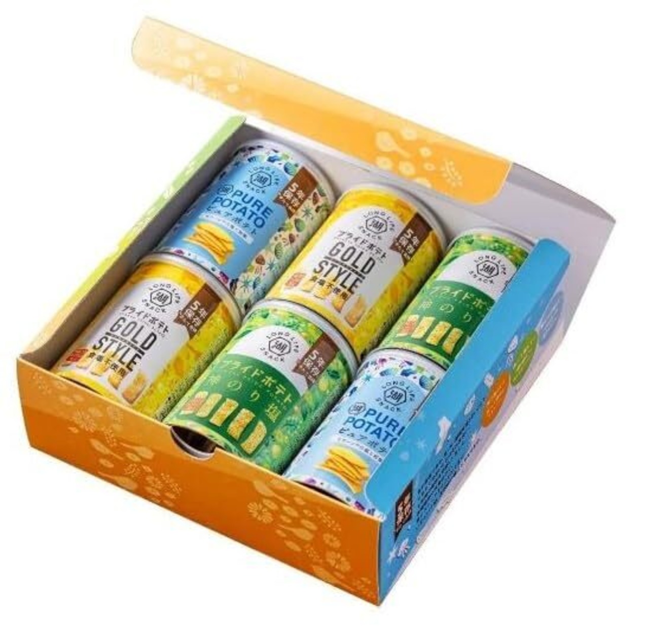 湖池屋 KOIKEYA LONG LIFE SNACK 神のり塩 ピュアポテト プライドボテト 3種×2缶 計6缶セット箱入り 5年保存ポテトチップス 防災食 非常食 備蓄用に 非常時でも、活力や癒やしのひとときを。贈答品にも。