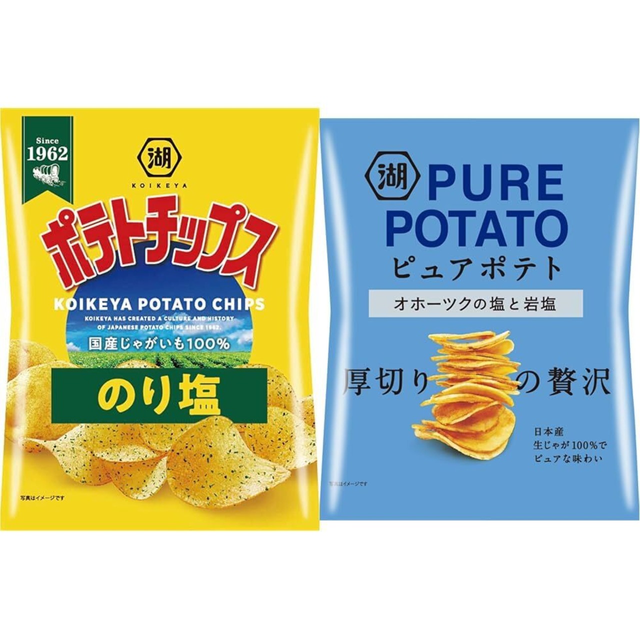 【セット買い】湖池屋 ポテトチップス のり塩 60g✕12袋 + 湖池屋 ピュアポテト オホーツクの塩と岩塩 55g✕12袋