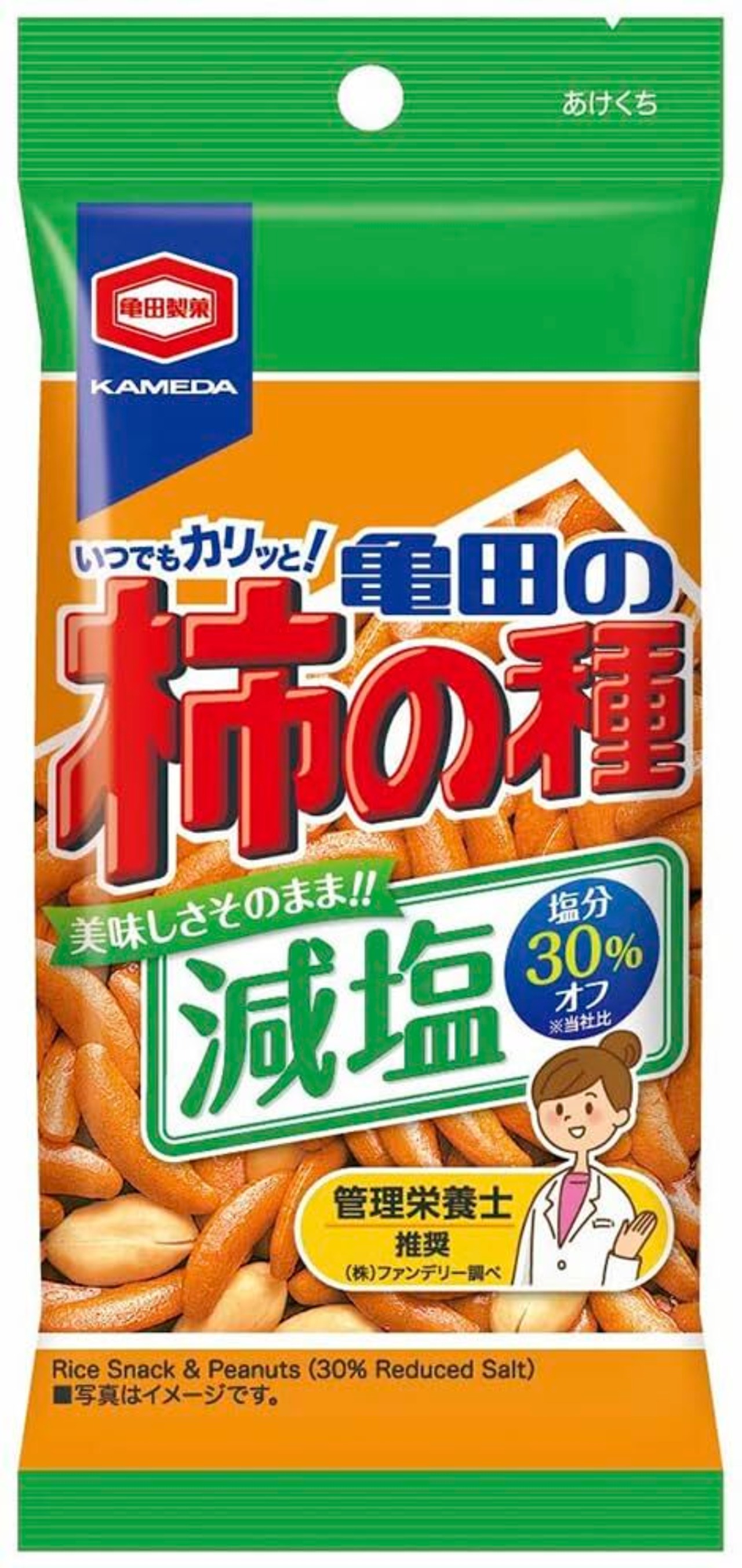 塩分30%オフの「亀田の柿の種」 美味しさそのまま、独自レシピで深みのある醤油のコクをアップしました。