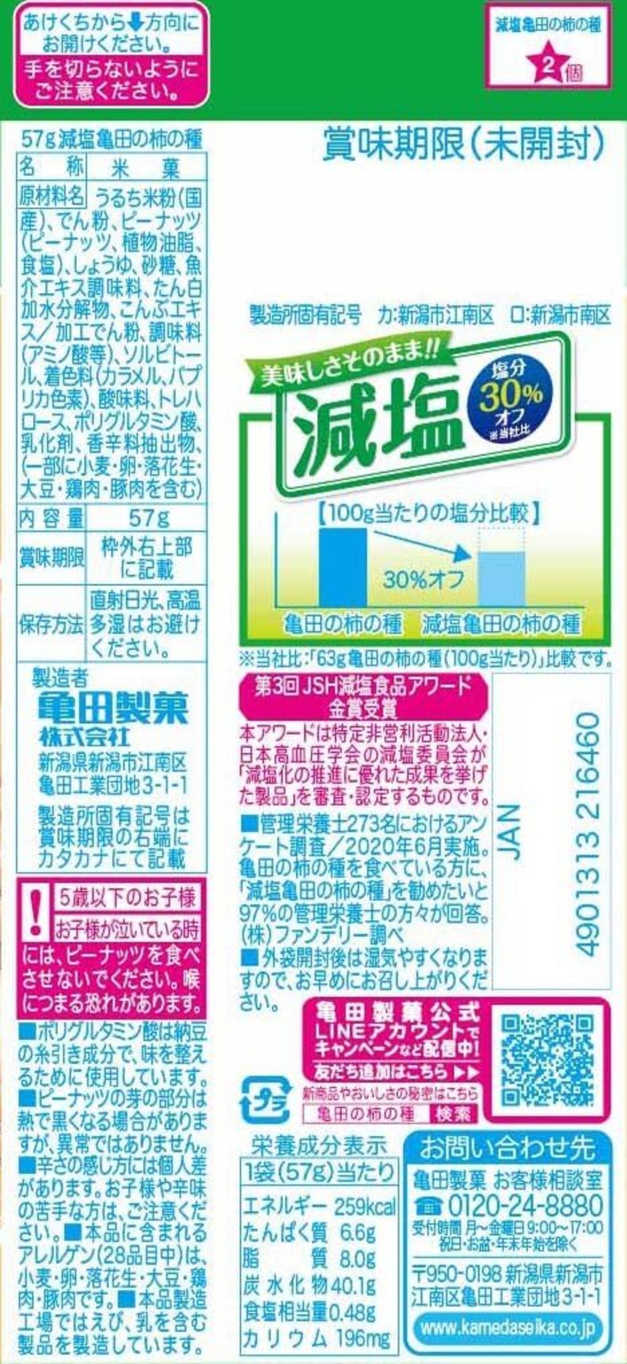 亀田製菓 減塩亀田の柿の種 57g×12袋