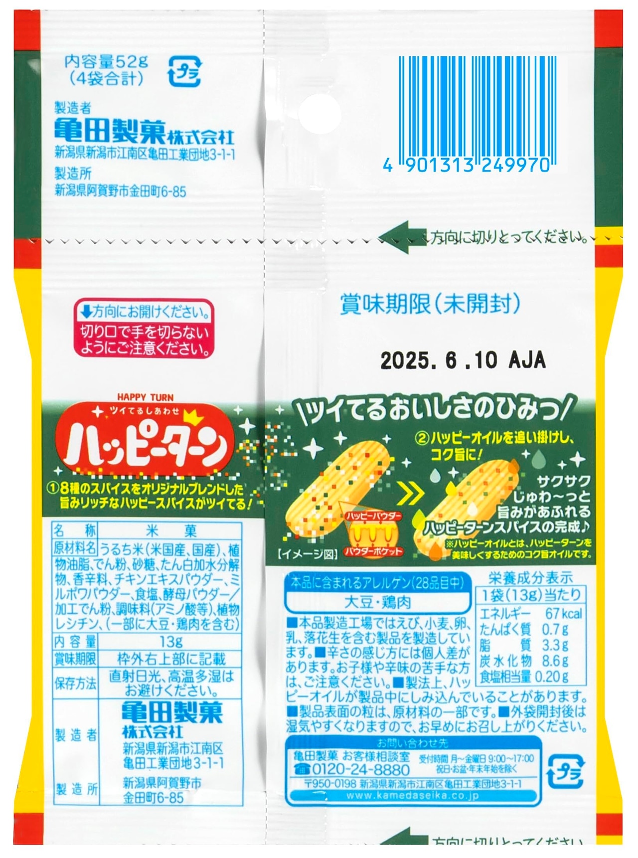 亀田製菓 ハッピーターンミニスパイス4連 52g×10