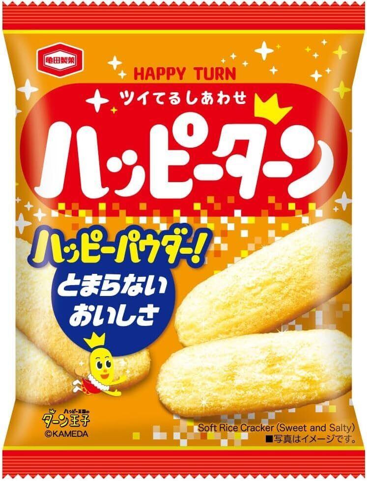 子ども、大人も皆が大好きハッピーターンです。とまらないおいしさ、ひらがる幸せの味でやみつきになります。