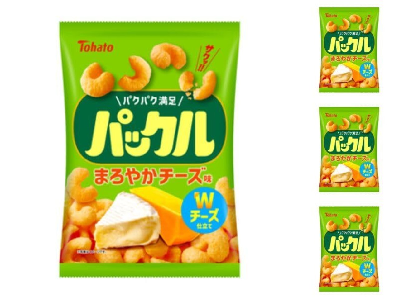 【4袋セット】 Wチーズ仕立ての「パックル・まろやかチーズ味」は、チェダーチーズパウダーとカマンベールチーズパウダーを使用し、まろやかな味わい