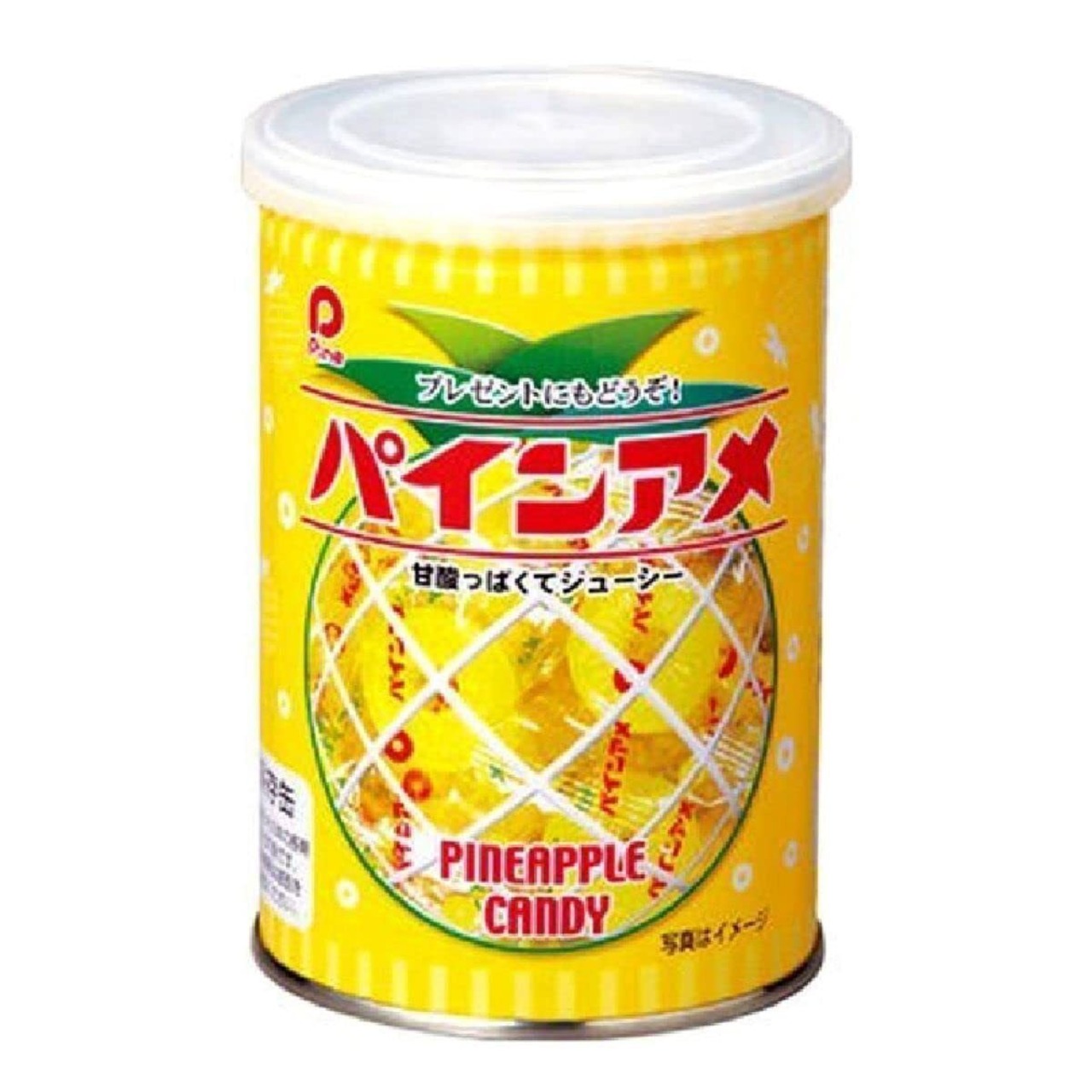 【パインアメ缶】砂糖(国内製造)、水飴、パイナップル果汁、脱脂粉乳/酸味料、香料、着色料(紅花黄、モナスカス)