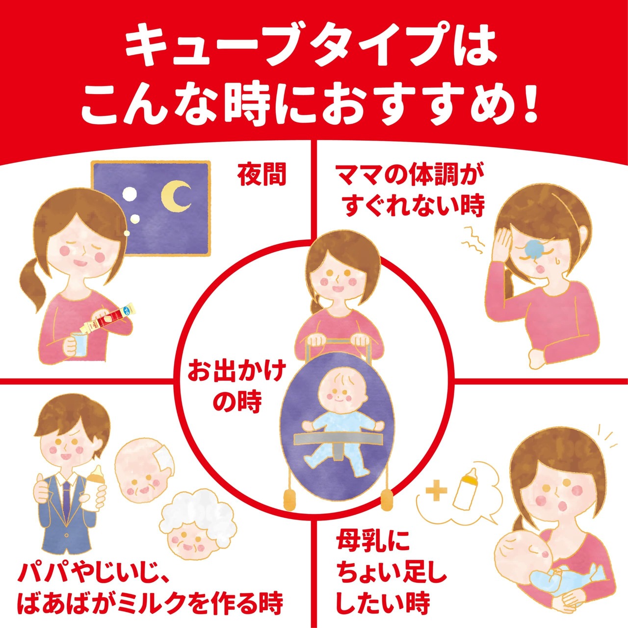 キューブタイプと液体ミルクと専用アタッチメントのセット商品です。