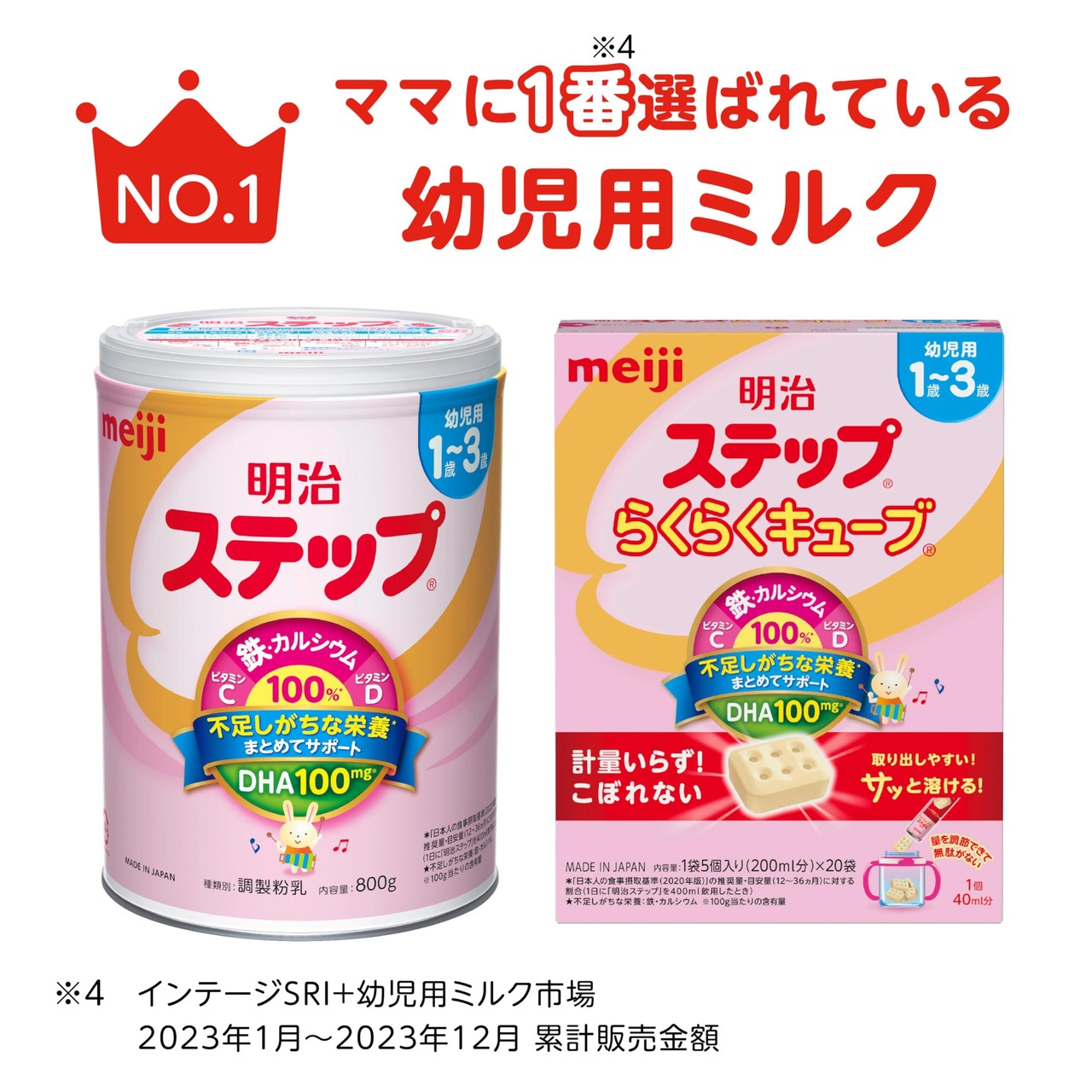 ●明治ステップらくらくミルクは、1~3歳頃の幼児に必要な栄養が摂取できるフォローアップミルクで、不足しがちな鉄、カルシウム、DHA、ビタミンC、ビタミンDの摂取をサポート出来ます。